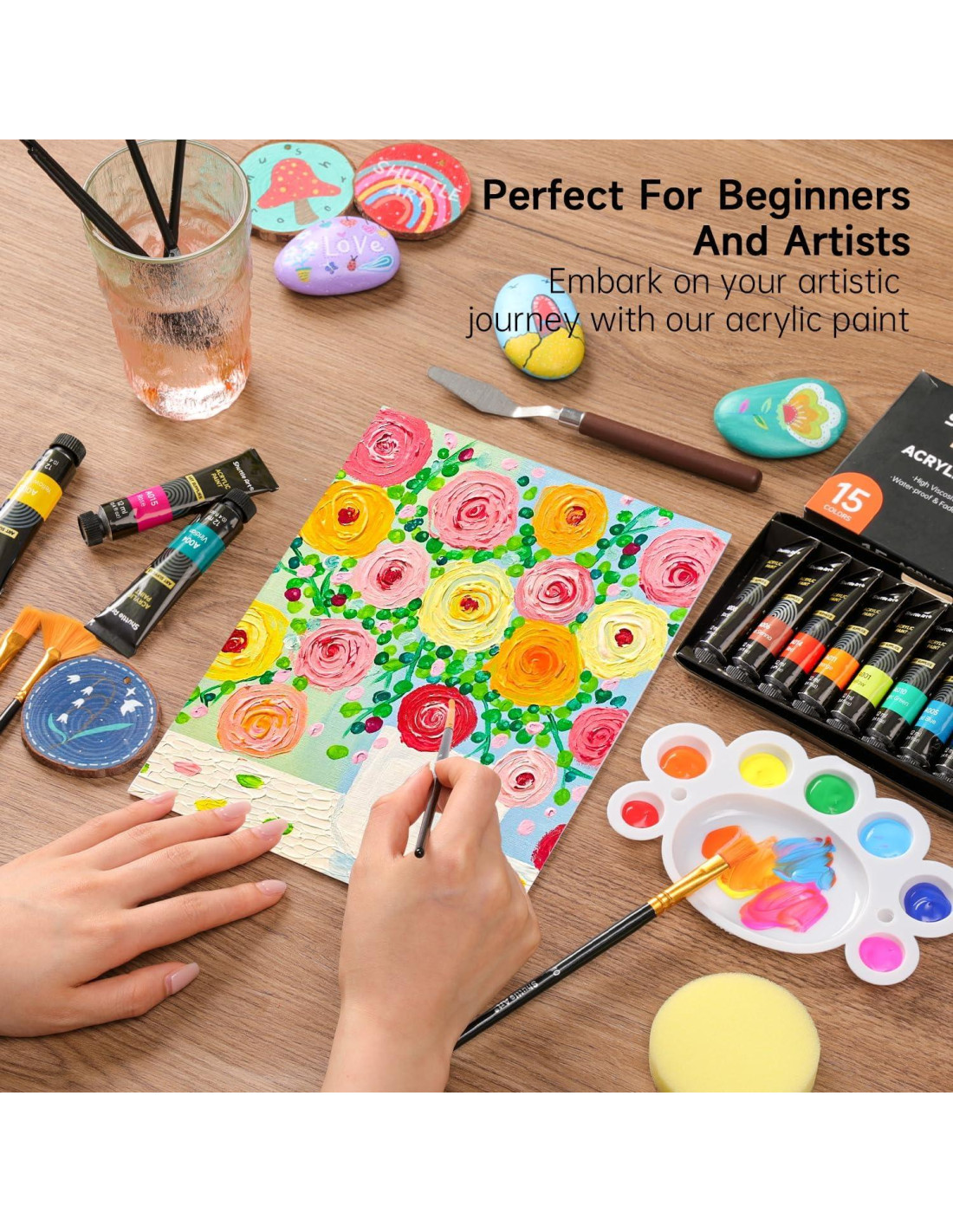 - JUEGO COMPLETO DE PINTURA ACRÍLICA: El Juego de Pintura Acrílica de 47 Piezas de Shuttle Art incluye 2 paquetes de 15 colores de pintura acrílica (12ml cada tubo) y 10 Pinceles de Pintura, 4 Lienzos de Pintura, 1 Cuchillo de Pintura, 1 Paleta, 1 Esponja. Regalo perfecto para artistas, adultos y niños, pintura y manualidades