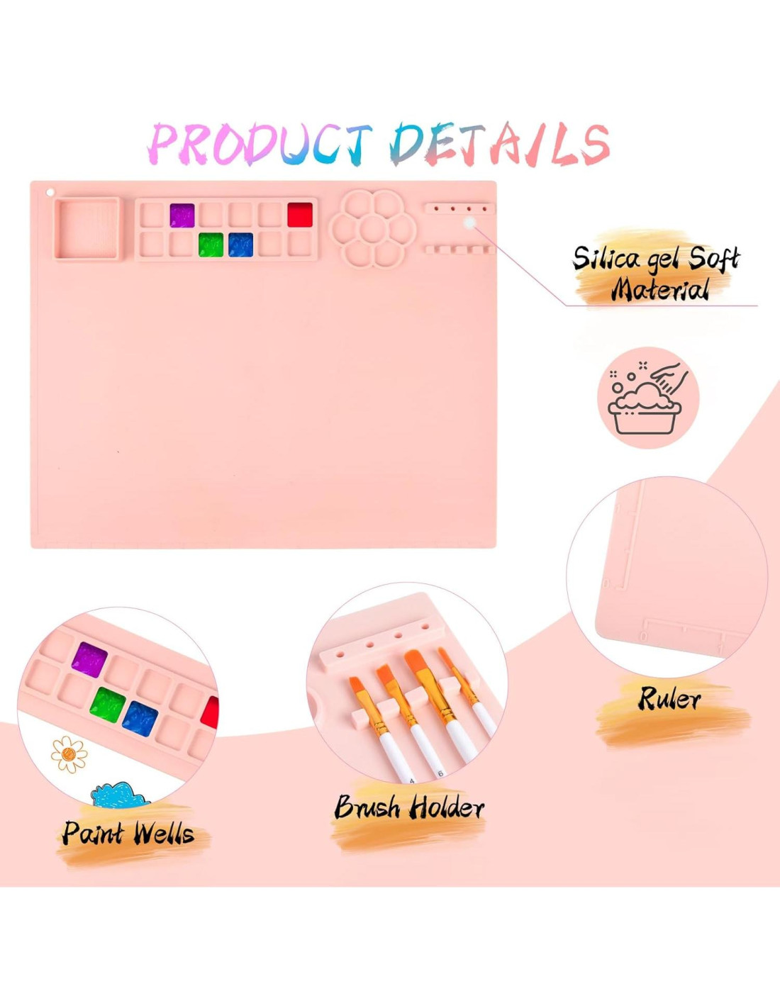- Alfombrilla de Pintura de Grado Alimenticio: Alfombrilla de silicona hecha de silicona de grado alimenticio, flexible, pigmentos antiadherentes, impermeable, resistente al calor, no se decolora, no mancha, duradera, no se deforma ni se rasga fácilmente. Viene con 19 bandejas para pintura y 1 bandeja cuadrada grande para mezclar de manera eficiente, se puede usar como paleta de pintura, el lado izquierdo y la parte inferior de esta alfombrilla de silicona están diseñados con una escala, más conveniente para tu creación artística.