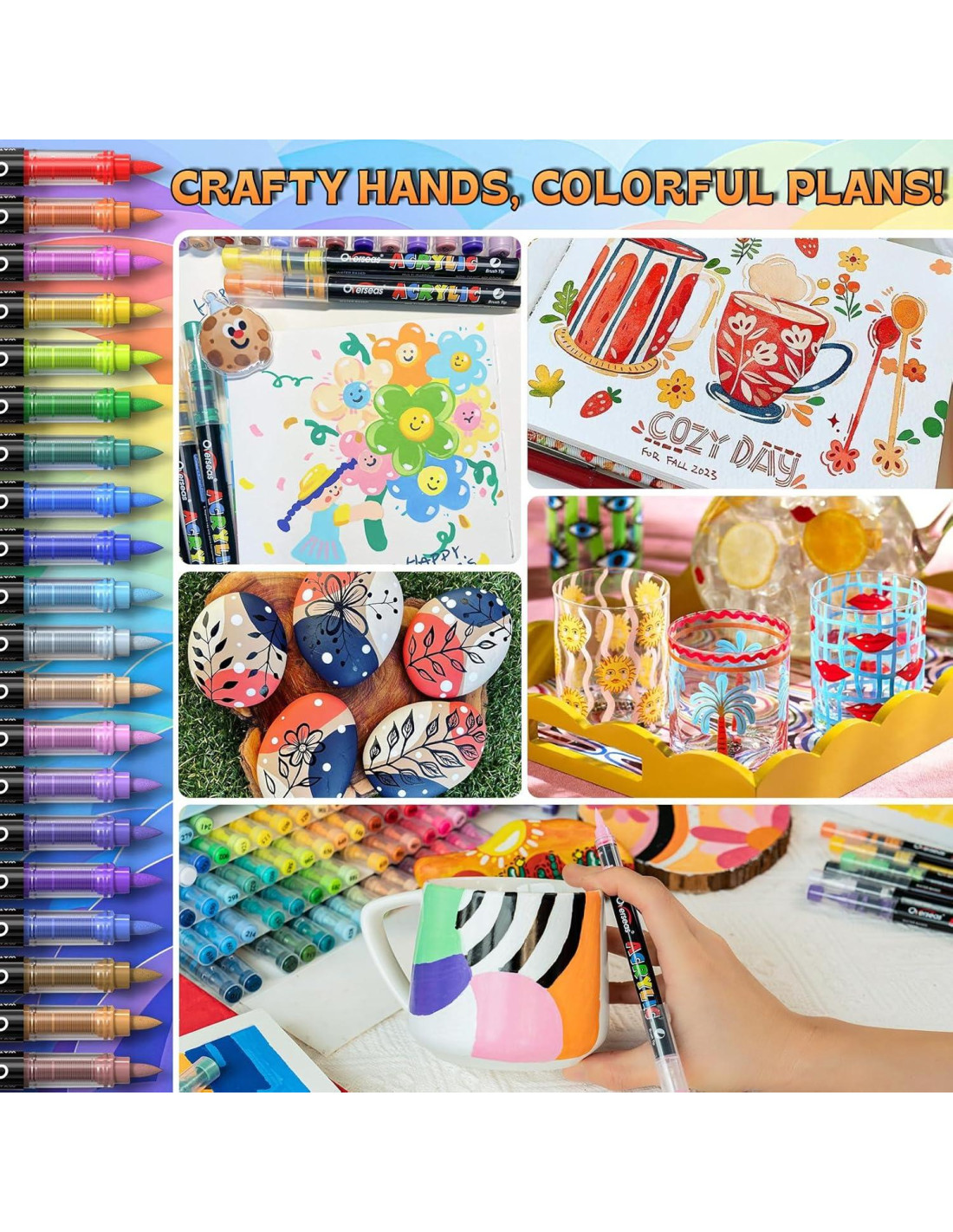 - Colores Brillantes y Vibrantes: Este conjunto de marcadores acrílicos contiene 60 colores. Con un gráfico de colores en la caja y códigos de color correspondientes en las tapas, puedes encontrar fácilmente el color deseado. El conveniente diseño de extracción en capas asegura un fácil acceso a todos los marcadores.