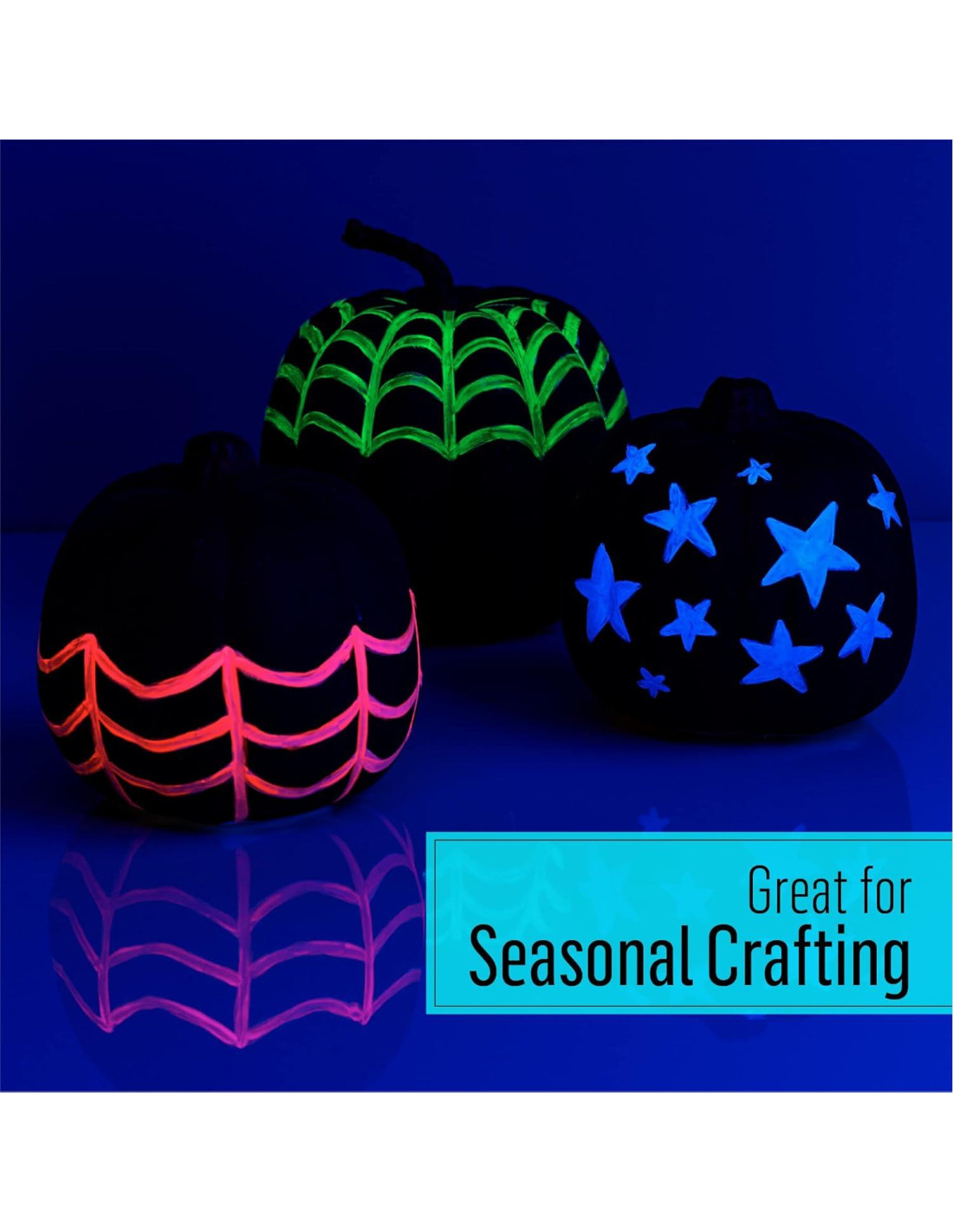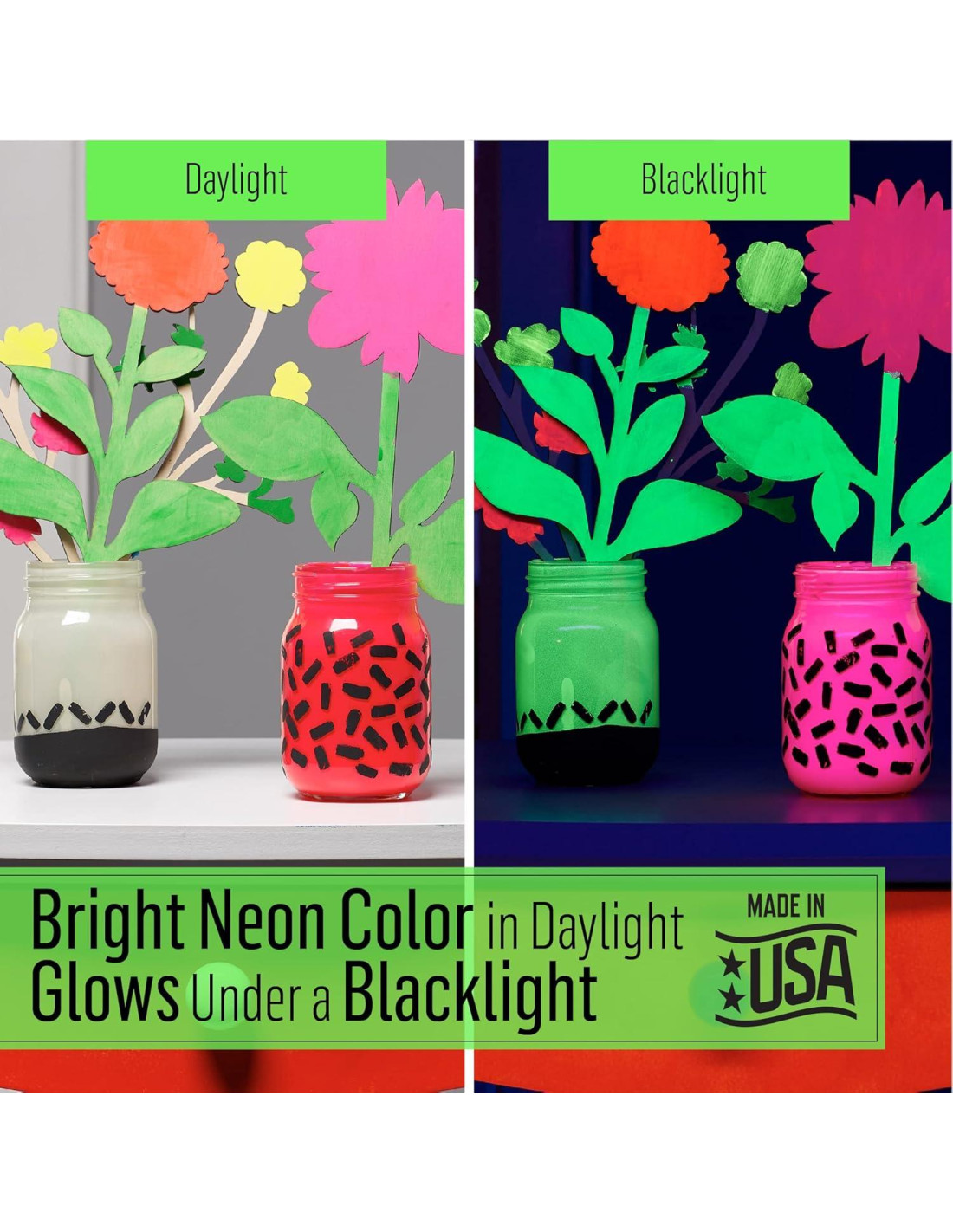 - ACABADO NEÓN - Esta brillante pintura acrílica se seca con un acabado neón suave que brilla intensamente bajo una luz negra mientras aparece como un color neón brillante en luz normal, perfecto para agregar un toque de color a todas tus artes y manualidades.