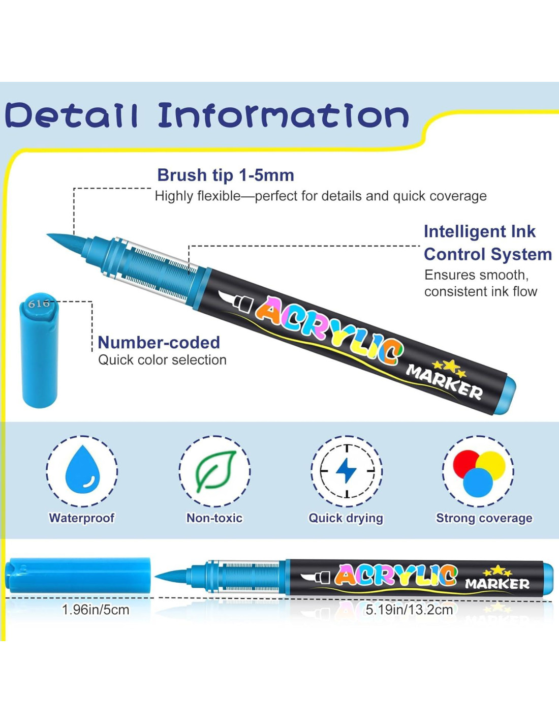 Marcadores de pintura acrílica Astriscribe de 72/120/168/240 colores. ¿Cansado de marcadores que saltan, se desvanecen o se tapan? Lo soluciona. Nuestros marcadores acrílicos de punta de pincel ofrecen: Flujo de Tinta de Precisión - La tinta líquida fluye continuamente. Cobertura de Una Sola Capa - El color opaco domina cualquier superficie. Perfecto para: Lienzo, madera, roca, tela. Desbloquea una creatividad impecable. ¡Prueba hoy!