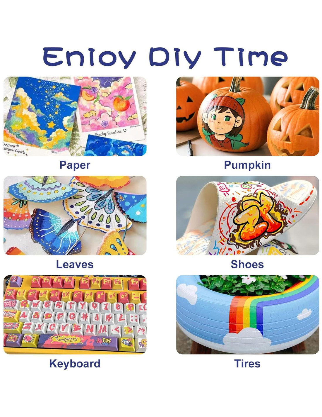 - Maestros de Múltiples Superficies: Desde rocas, madera, vidrio, porcelana, cerámica, plástico, cuero, lienzo, metal, hasta zapatos, estos marcadores acrílicos están diseñados para funcionar a la perfección. Una vez secos, se vuelven impermeables, ¡haciendo que tus creaciones duren años!