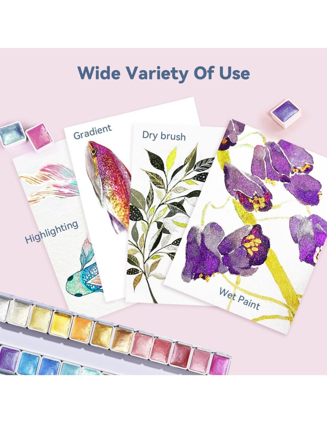 - Característica especial: set de pintura acuarelada brillante, metálico