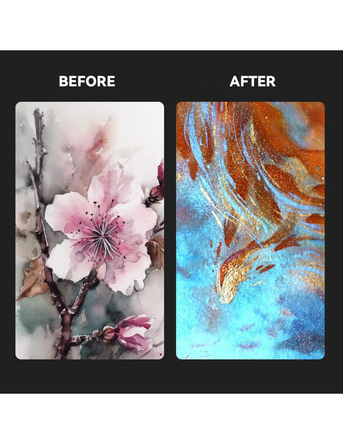 - Efecto Brillante - Premezclado con medio IRIDESCENTE, proporciona un efecto brillante especial, ideal para efecto de brillo y resaltado