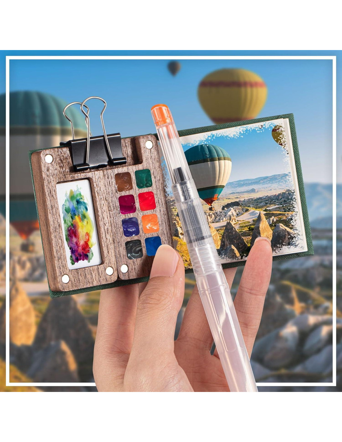 - Materiales de Calidad para Durabilidad: la paleta de acuarela está hecha de madera de nogal y el bloc de acuarela está hecho de papel de calidad, asegurando durabilidad a largo plazo, los clips de metal aseguran el bloc de dibujo para un uso fácil, y los pinceles de acuarela están hechos de materiales de calidad que proporcionan trazos precisos, haciendo que este set sea ideal para artistas profesionales y novatos por igual; Tenga en cuenta que el producto no contiene pintura