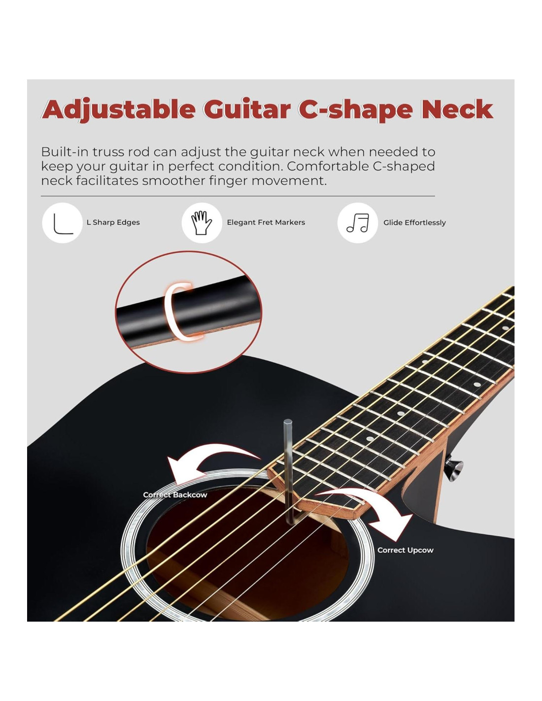 - Diseño Versátil: Estilo de cuerpo Dreadnought y preamplificador incorporado con EQ te permiten tocar acústico o conectar para presentaciones en vivo. Guitarra acústica eléctrica de 36" con diseño cutaway proporciona fácil acceso a los trastes superiores.