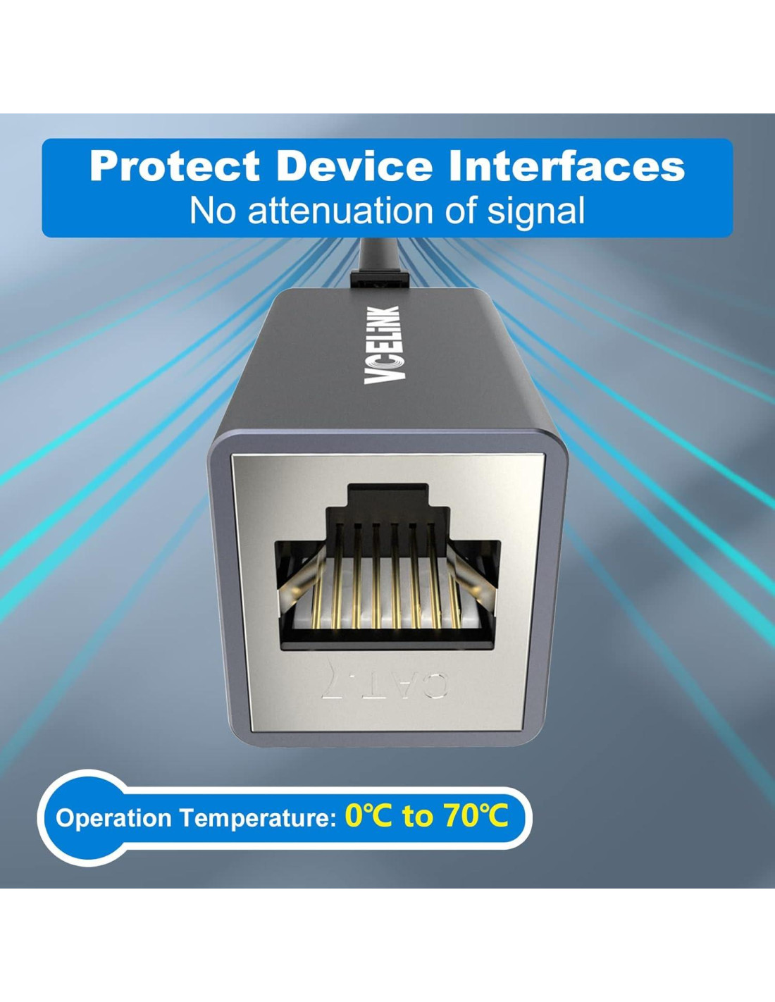 - Material de Alta Calidad: La carcasa del acoplador de red está hecha de aleación de aluminio, 360 protege contra la interferencia en la velocidad de la red, como la interferencia EMI/RFI. La carcasa de metal es a prueba de golpes y resistente al desgaste. La capa de plástico PC incorporada lo hace resistente al calor y al envejecimiento. Los contactos chapados en oro son resistentes a la oxidación y al enchufe, pueden transmitir señales de red de manera estable.