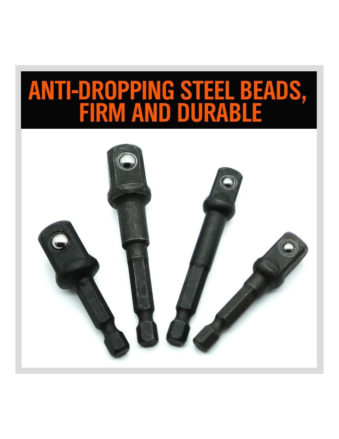 - Estos adaptadores de grado de impacto resistentes a la corrosión son ideales para proyectos que aumentan el par y ayudan a prevenir la rotura y el desportillado del enchufe. Los rodamientos de bola de resorte en cada cabeza cuadrada están bloqueados de forma segura en el enchufe para evitar deslizamientos durante el uso.