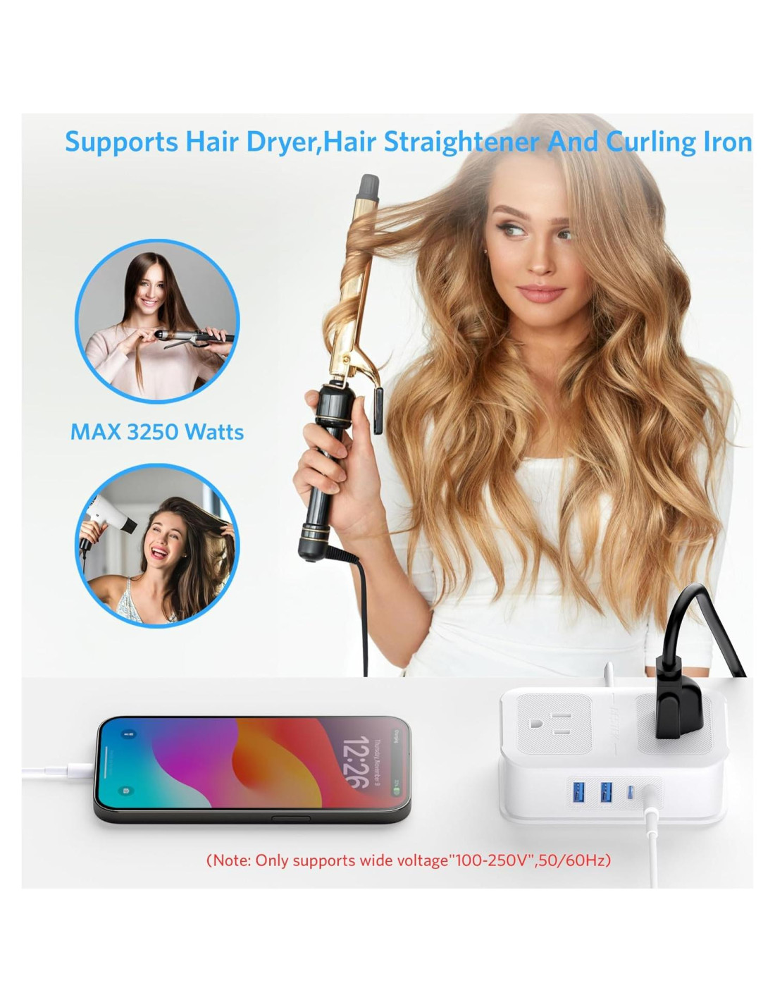 - Adaptador de Viaje Internacional 8 en 1: El adaptador de viaje universal viene con 2 salidas de CA y soporta dispositivos de hasta 3250W (250V máx, 13A). Este adaptador de corriente internacional está equipado con 2 puertos USB-A y 2 puertos USB-C (C1: PD 20W), la salida combinada es 5V/4A, y puede cargar 8 dispositivos a la vez. Al mismo tiempo, puede detectar automáticamente su dispositivo para una carga más rápida. Su diseño compacto lo convierte en un esencial de viaje imprescindible, asegurando que esté alimentado donde quiera que vaya.