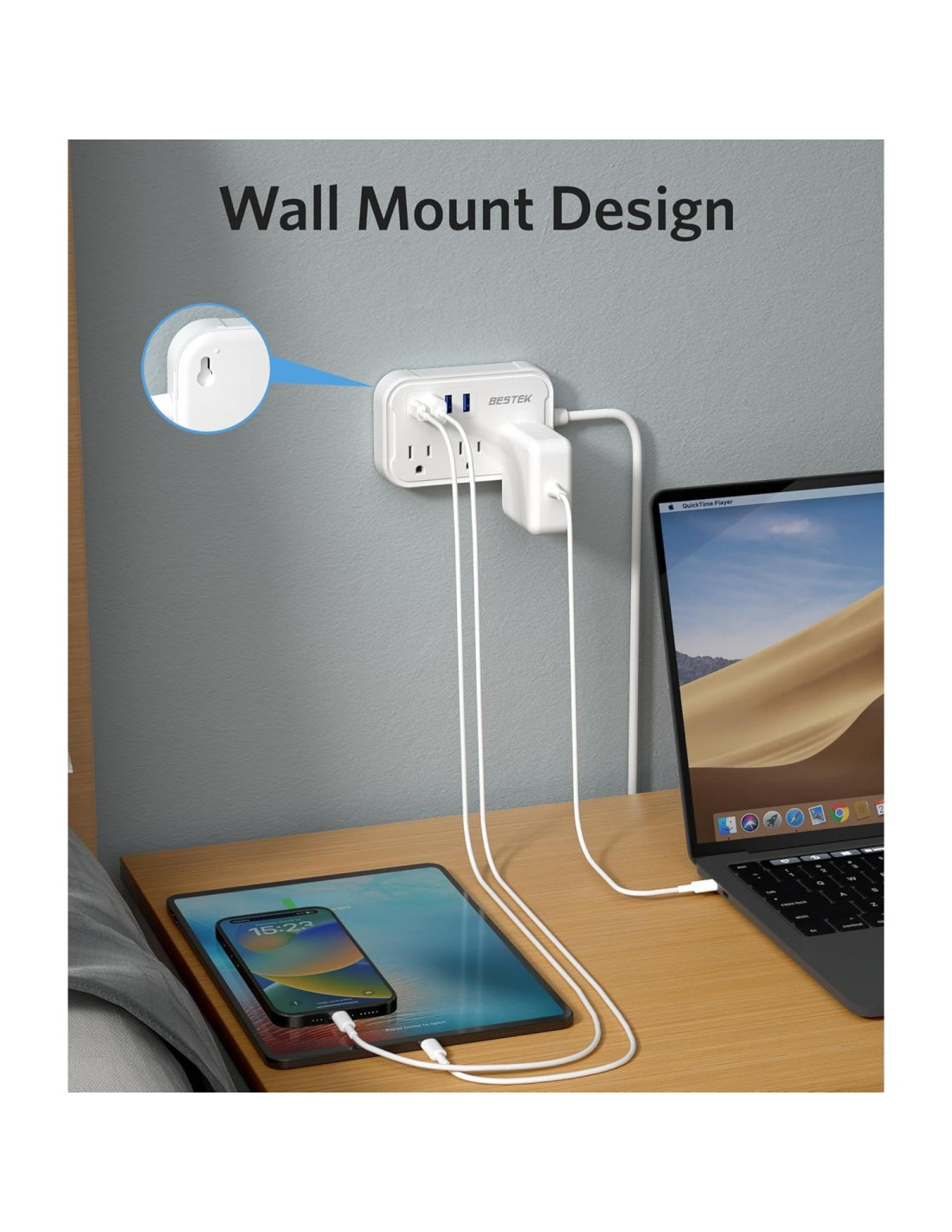 - Adaptador de Enchufe Internacional BESTEK: Este adaptador de enchufe de viaje del Reino Unido tiene un diseño 7-en-1 con 3 salidas de CA, 3 puertos USB-A y 1 puerto USB-C (PD 20W) de carga rápida, con una capacidad máxima de hasta 3250 vatios (máx. 250 voltios, 13 A). Puede cargar hasta 7 dispositivos a la vez, incluyendo teléfonos celulares, laptops, tabletas y cámaras. Su diseño compacto lo convierte en un elemento esencial de viaje, asegurando que estés alimentado dondequiera que vayas.