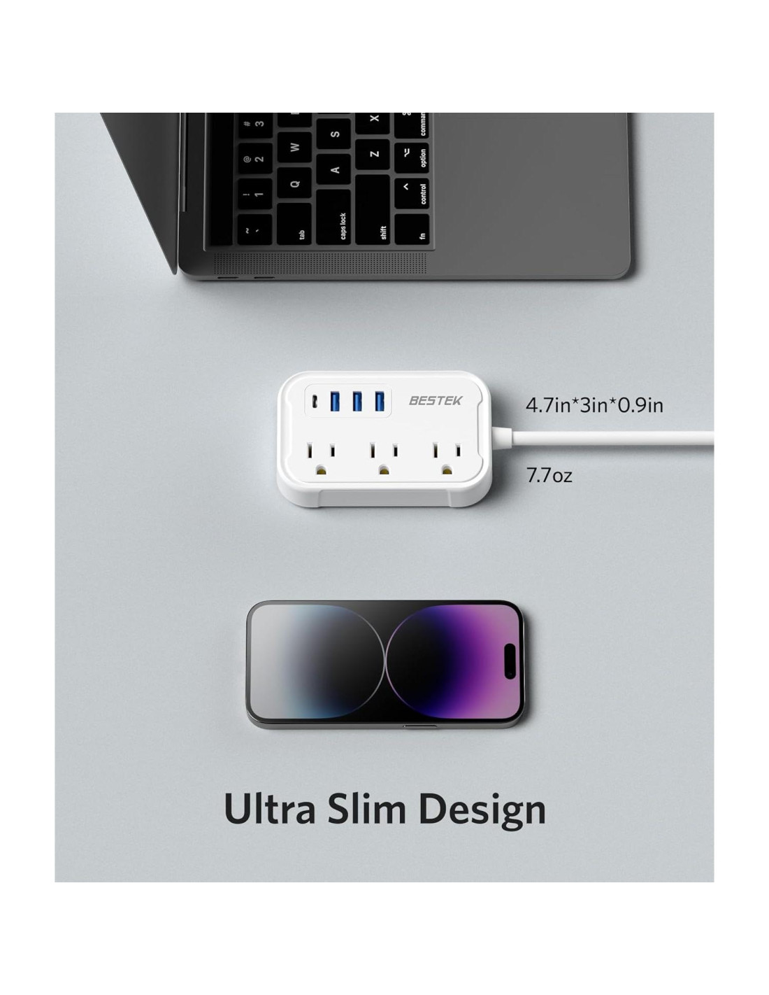 - Carga Portátil: Esta regleta de viaje tiene un cable de extensión de 0.79 m para un fácil acceso a lugares de difícil alcance. Su diseño versátil incluye dos orificios de montaje en la parte posterior, lo que la hace perfecta para instalaciones seguras en bancos de trabajo, paredes, debajo de mostradores y más. Esta regleta de viaje mantiene tus dispositivos conectados y al alcance.
