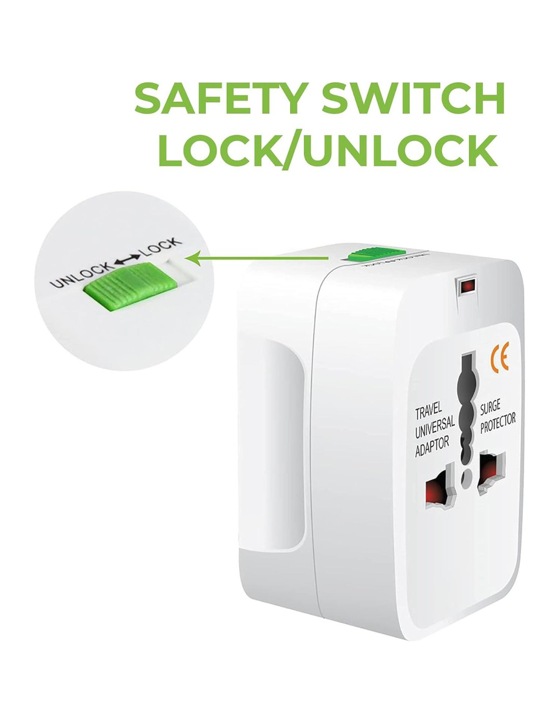 - BLOQUEO DE PIN PARA ENCHUFE SEGURO: ¿No odias cuando presionas los pines y se hunden de nuevo en el adaptador de viaje cuando lo presionas en el enchufe? Este adaptador de viaje universal bloquea y desbloquea los 8 pines de forma segura en sus posiciones fijas.