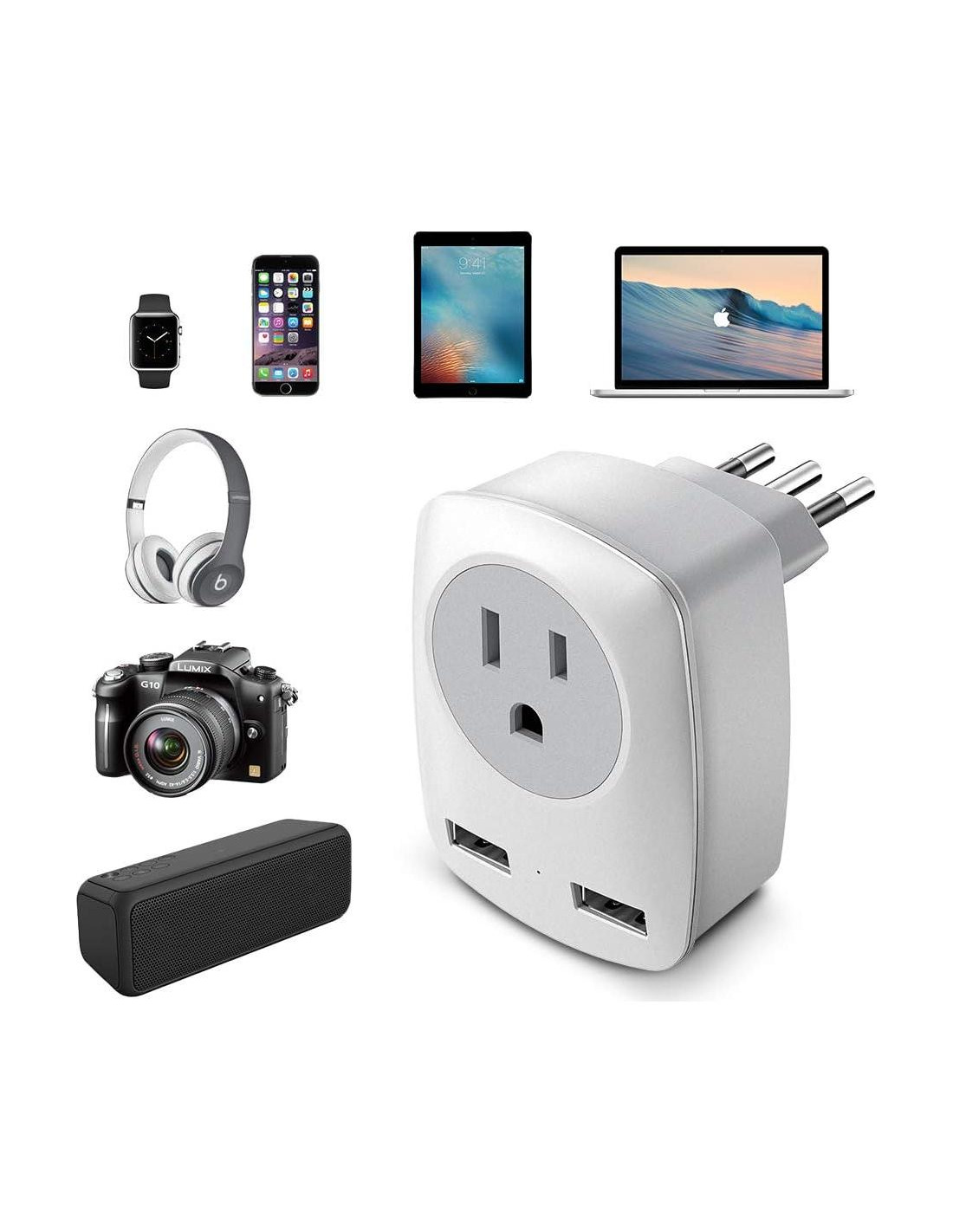 - Adaptador de Viaje de América a Italia - Este adaptador de enchufe para Italia es compatible en países extranjeros con enchufes Tipo-L como Italia, Chile, Etiopía, Libia, Siria, Túnez, Uruguay y más. Consulta la sección de descripción para conocer la lista de compatibilidad. Nota: algunos hoteles pueden necesitar enchufes tipo C de 2 clavijas, por favor verifica antes de viajar.