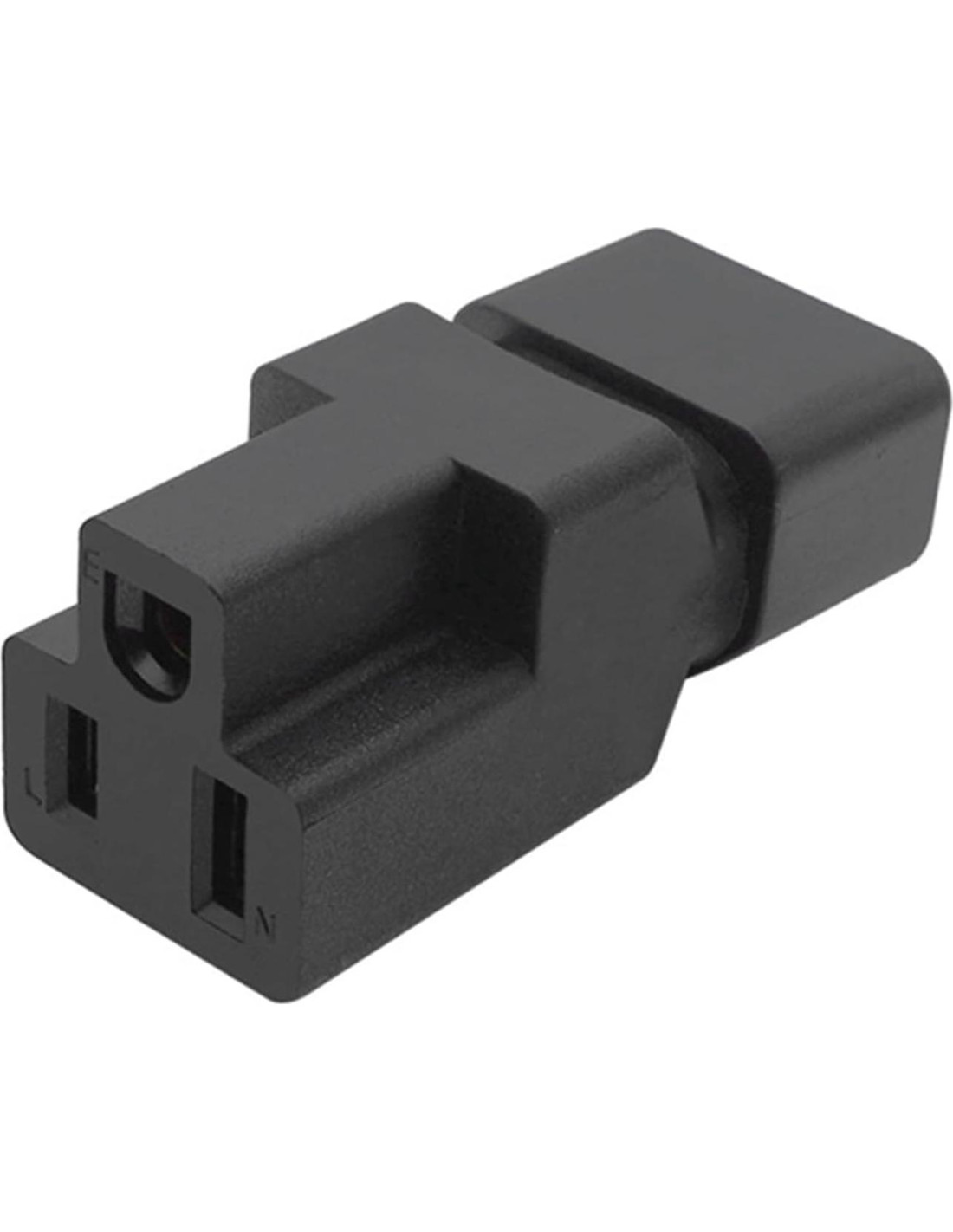 Especificaciones: Adaptador de Enchufe USA NEMA 5-15R a IEC 60320-C14. Estándar: NEMA 5-15R a IEC 60320-C14. Voltaje Nominal: 125V. Corriente Nominal: 10A. Clase de Inflamabilidad: 94-V0. Material: Nylon. Color: Negro. Convierte tu cable de poder C13 a un puerto hembra USA de 3 polos para ser un cable de extensión sin cable adicional. Nota: Este adaptador de enchufe NO transfiere voltaje, por favor verifica que tu dispositivo o fuente de poder esté dentro del rango de salida antes de usar o se producirá daño. Paquete Incluido: 2 x Adaptador de C14 a 5-15R.