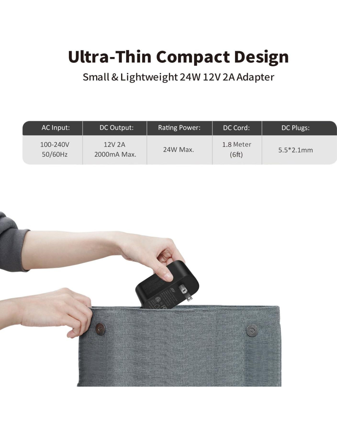 - ENTRADA Y SALIDA: Suministro de energía 12V 2A: Acepta entrada: AC 100~240V, 50/60Hz; Entrega salida: DC 12V 2A, proporcionando un máximo de 24W. Con una salida máxima de 2000mA, puede acomodar una amplia gama de amperajes, incluyendo 12V 2A, 1A, 1.5A, 0.8A, 0.5A, 2000mA, 1200mA, 1000mA, 700mA, 600mA, 500mA, 400mA, 300mA, 200mA, y 100mA, entre otros.