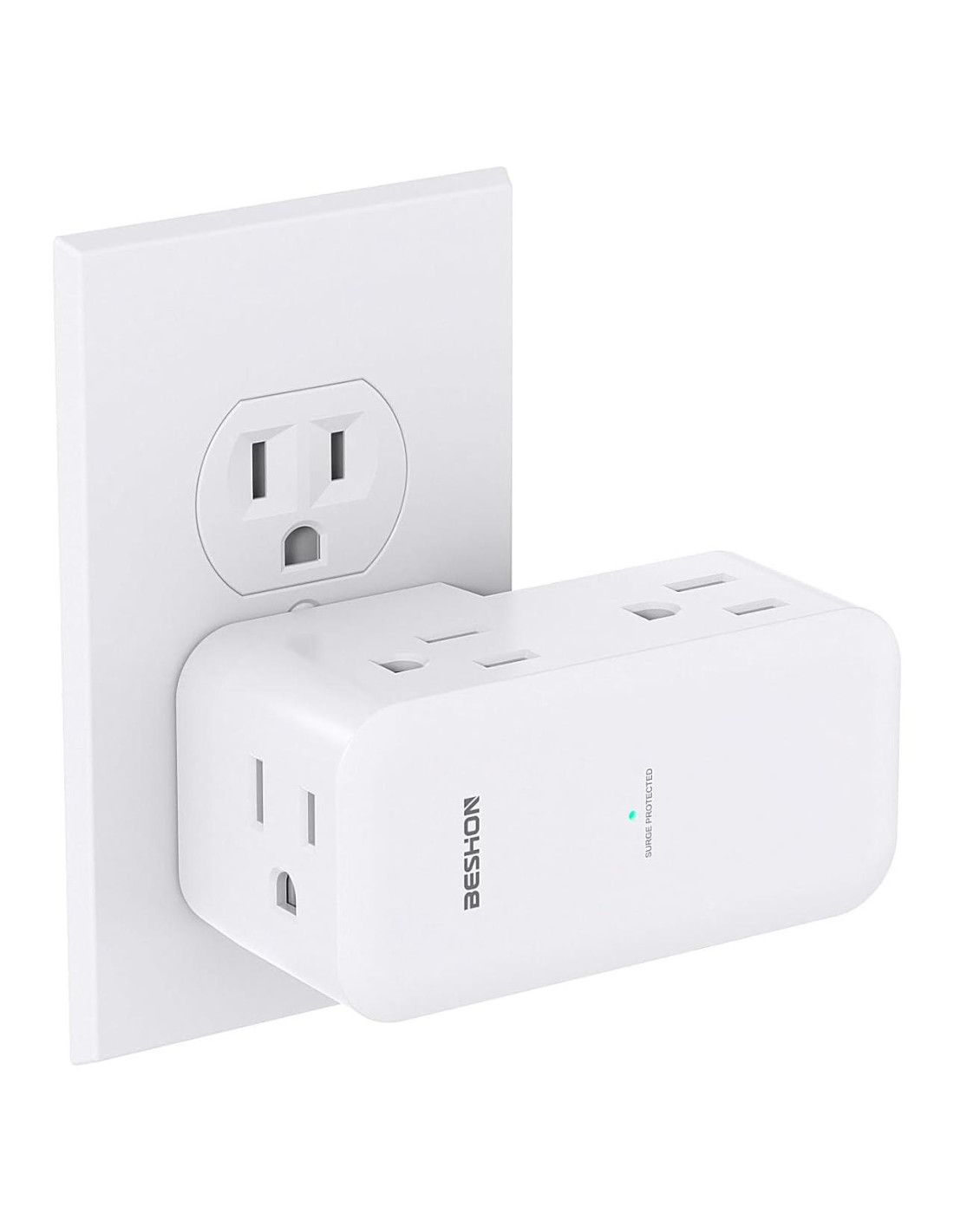 - [Protector de Sobretensión de 900J] El Divisor de Enchufe proporciona protección contra picos eléctricos. 3 Circuitos de Protección contra Sobretensiones complementarios, TVS (supresor de voltaje transitorio) MOV (varistor de óxido metálico) GDT (tubo de descarga de gas), con velocidad de respuesta de menos de 1Ns, y capacidad mínima de absorción de energía de 900 Julios, mucho más rápido y confiable que el circuito de protector de sobretensión MOV tradicional. (Luz indicadora de "PROTEGIDO CONTRA SOBRETENSIÓN" encendida para mostrar que tus dispositivos están protegidos)