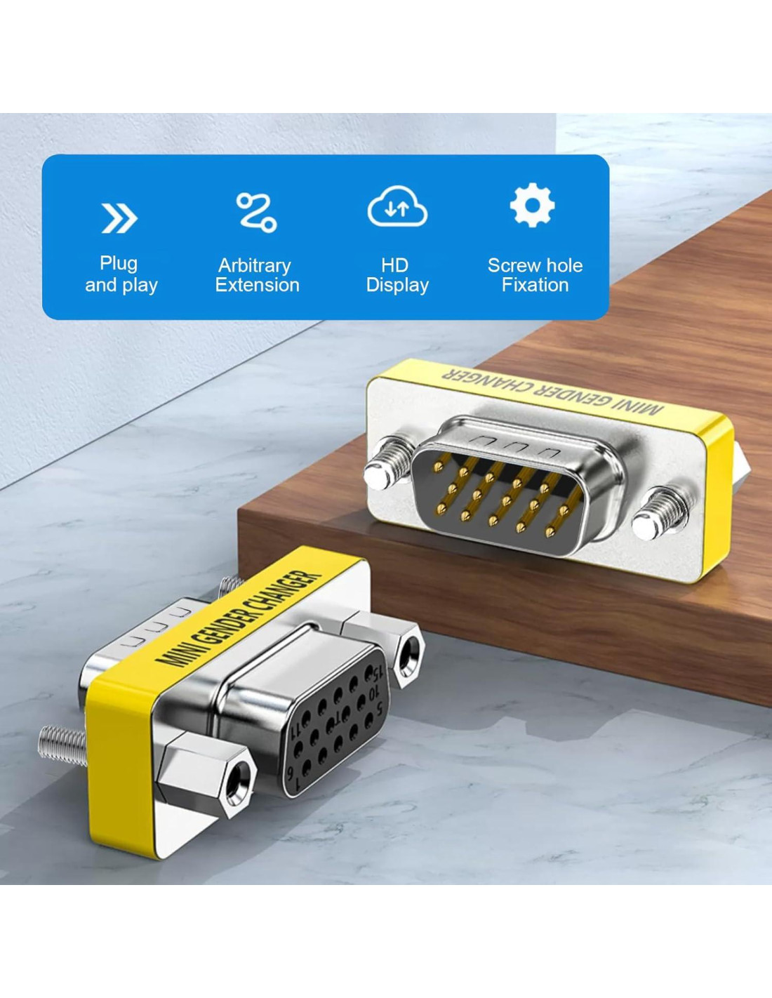 Ambos lados están fijos con tornillos para asegurar una conexión estable en todo momento. Diseño pequeño y simple que proporciona comodidad para llevar y almacenar, fácil de usar e instalar. Estos adaptadores son ideales para cambiar el género en los cables de monitor, ahorrando el costo y la molestia de comprar un cable nuevo al solo cambiar el género de su puerto y usar el cable que ya tiene. Acopladores VGA convenientes para usar en casa y llevar en la carretera para conexiones de monitor de oficina o proyector.