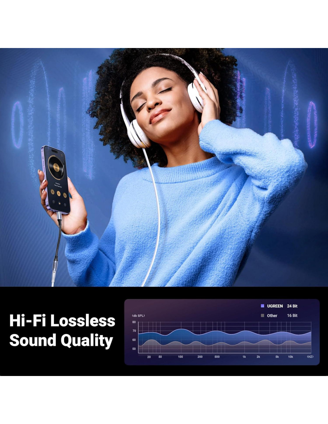 - Diseño Duradero: ¡Sin daños, rayones, doblados o desgastes! El dongle de UGREEN para iPhone está hecho de una carcasa de aleación de aluminio de alta calidad y material de cable trenzado de nylon, con cobre esmaltado y chaqueta de PVC incorporados para asegurar la transmisión de sonido estable