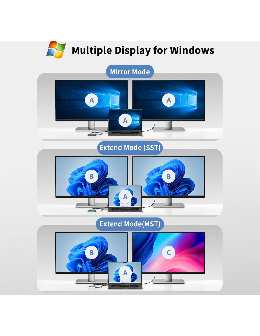 - Compatibilidad Versátil: Este adaptador de monitor dual cuenta con un chip avanzado que soporta una variedad de sistemas operativos, incluyendo Linux, Windows, Mac OS y Android. Funciona sin problemas con los últimos USB-C/Tipo-C, Thunderbolt 3/4 y DP Alt Mode. Ya sea que estés usando un MacBook, Dell XPS, HP, Lenovo o Samsung Galaxy, nuestro adaptador asegura una conexión perfecta.