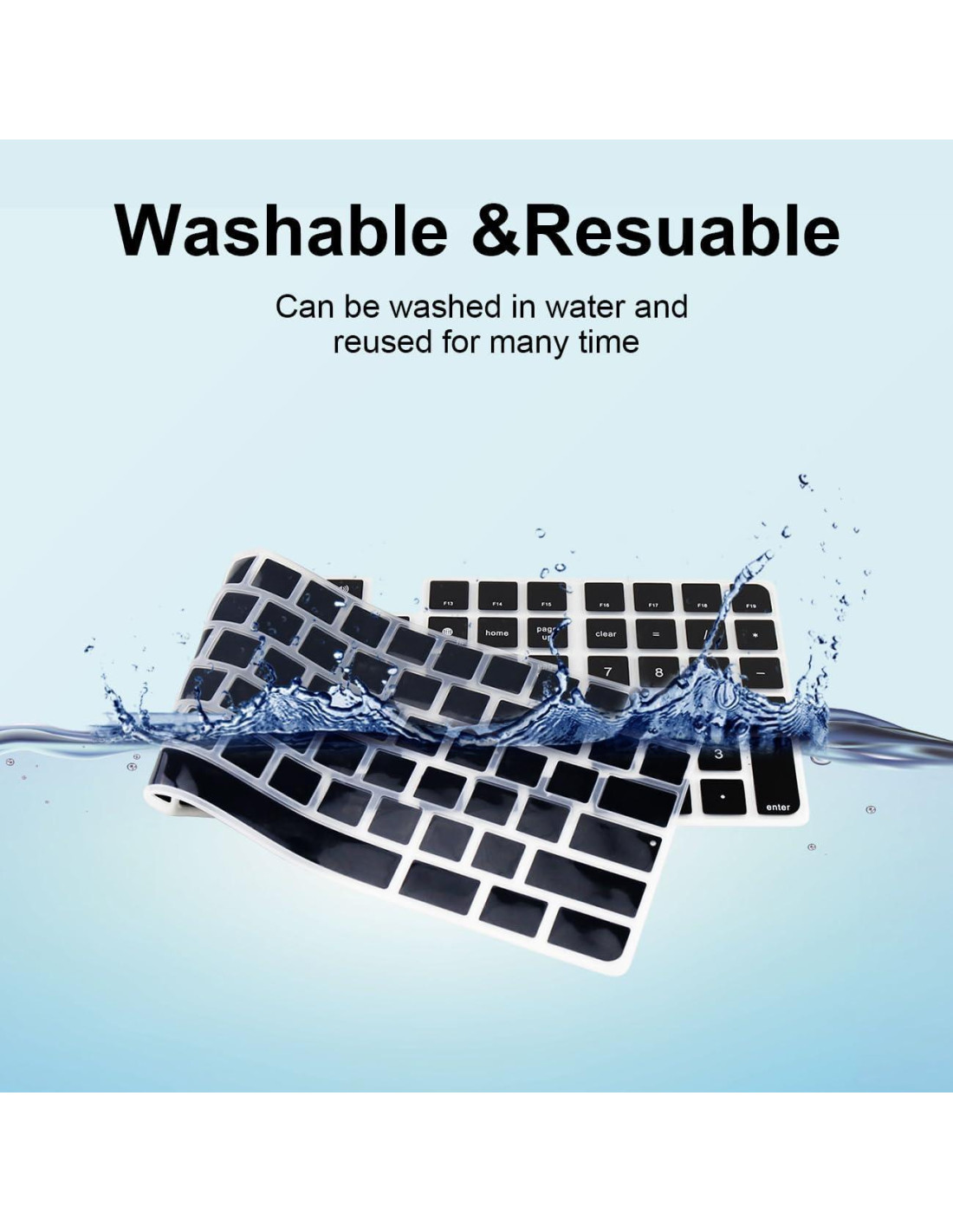 - Experiencia de Escritura Cómoda: La suave funda del teclado proporciona un toque suave en las teclas, reduciendo el sonido y el impacto de las pulsaciones, haciendo que escribir sea más fácil y silencioso. También previene marcas de sudor y huellas dactilares, manteniendo la superficie del teclado limpia y ordenada.