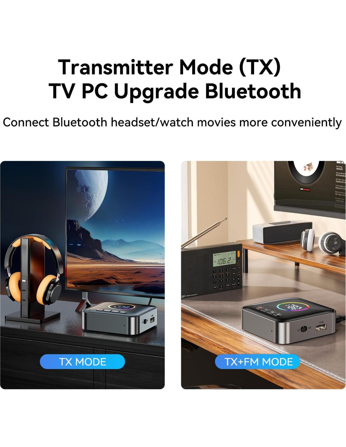 - [Receptor/Transmisor Bluetooth] : El receptor y transmisor Bluetooth MOREGAX M10 puede transmitir música desde su teléfono celular, computadora o tableta a cualquier sistema estéreo de su hogar a través de Bluetooth. También puede transmitir música desde su TV, computadora, proyector, amplificador a auriculares o altavoces Bluetooth (conexión automática por proximidad), plug and play, fácil de usar