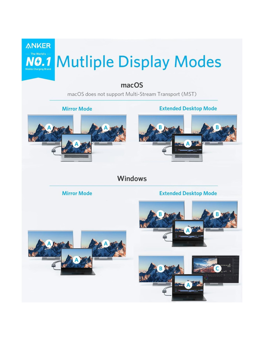- Doble Pantalla 4K: Transmite contenido a pantallas duales en resoluciones de hasta 4K@60Hz para laptops con soporte para DP 1.4, o hasta 4K@30Hz para laptops con soporte para DP 1.2.(macOS y iPadOS solo soportan el modo de Transporte de Flujo Único (SST). Windows soporta tanto el modo de Transporte de Flujo Único (SST) como el modo de Transporte de Flujo Múltiple (MST).)