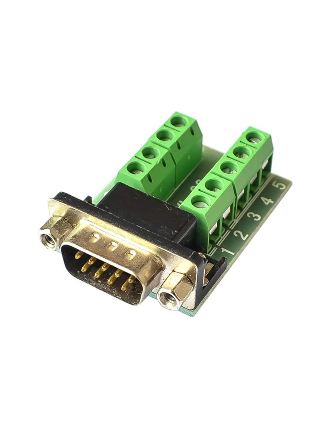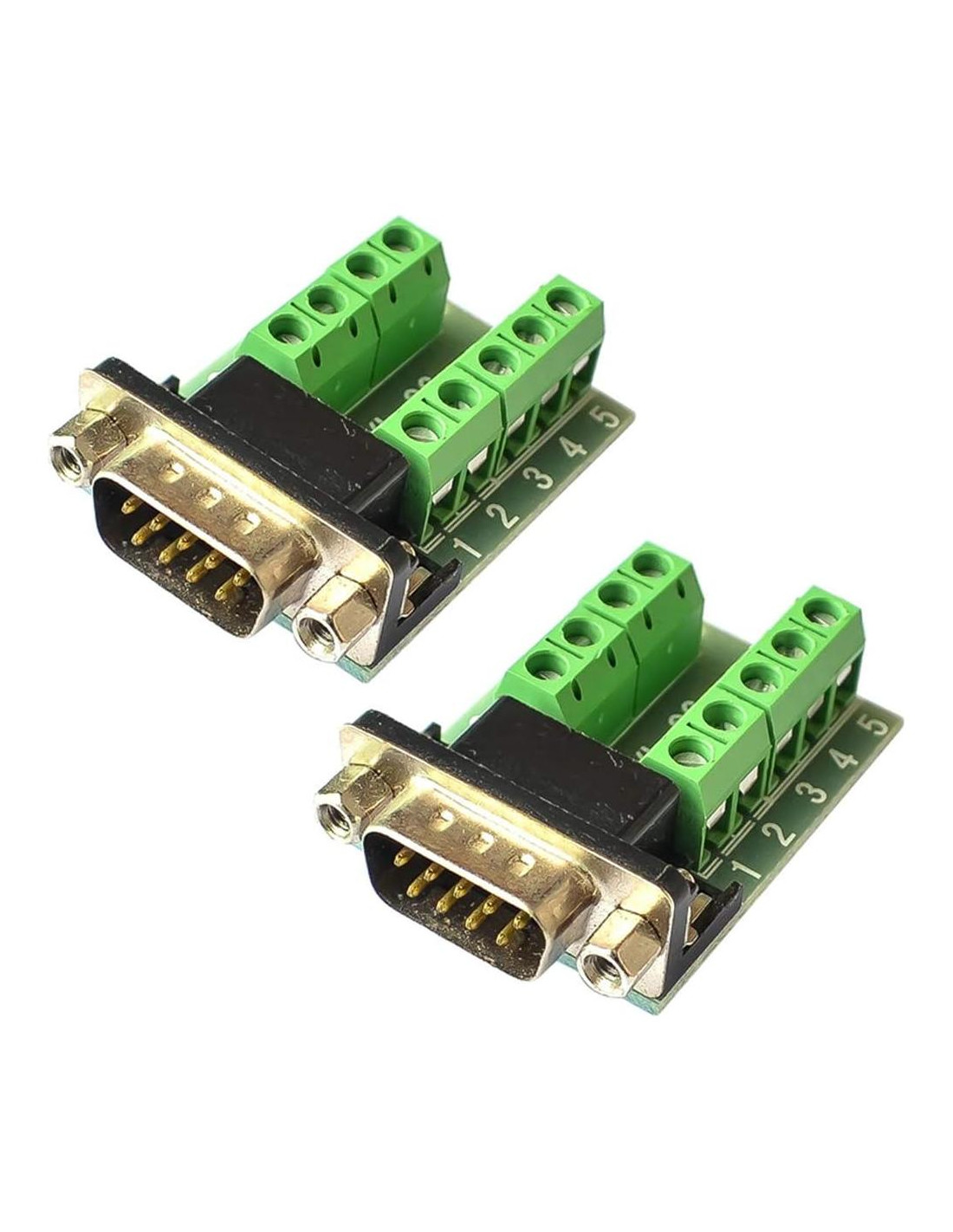 Descripción: Módulo de señal adaptador macho DB9-M2, RS232 Serial DB9 de 9 pines a bloque de terminal de tornillo de 4+5 posiciones. Conector adaptador DB9 terminales para facilitar el proyecto, puesta en marcha del equipo en el sitio. El rango de cable del bloque de terminal de tornillo es de 24-12AWG, y el paso es de 5.08mm. Socket DB9 de cobre puro, anti-oxidación, mejor contacto. Diámetro del agujero de fijación: 3mm; Distancia entre centros del agujero de fijación: 6mm/0.24 pulgadas Tamaño: 45 x 31 x 18mm/1.8 pulgadas x 1.2 pulgadas x 0.71 pulgadas (L*W*H) Paquete incluido: 2* Adaptador DB9 Macho RS232 a Terminal