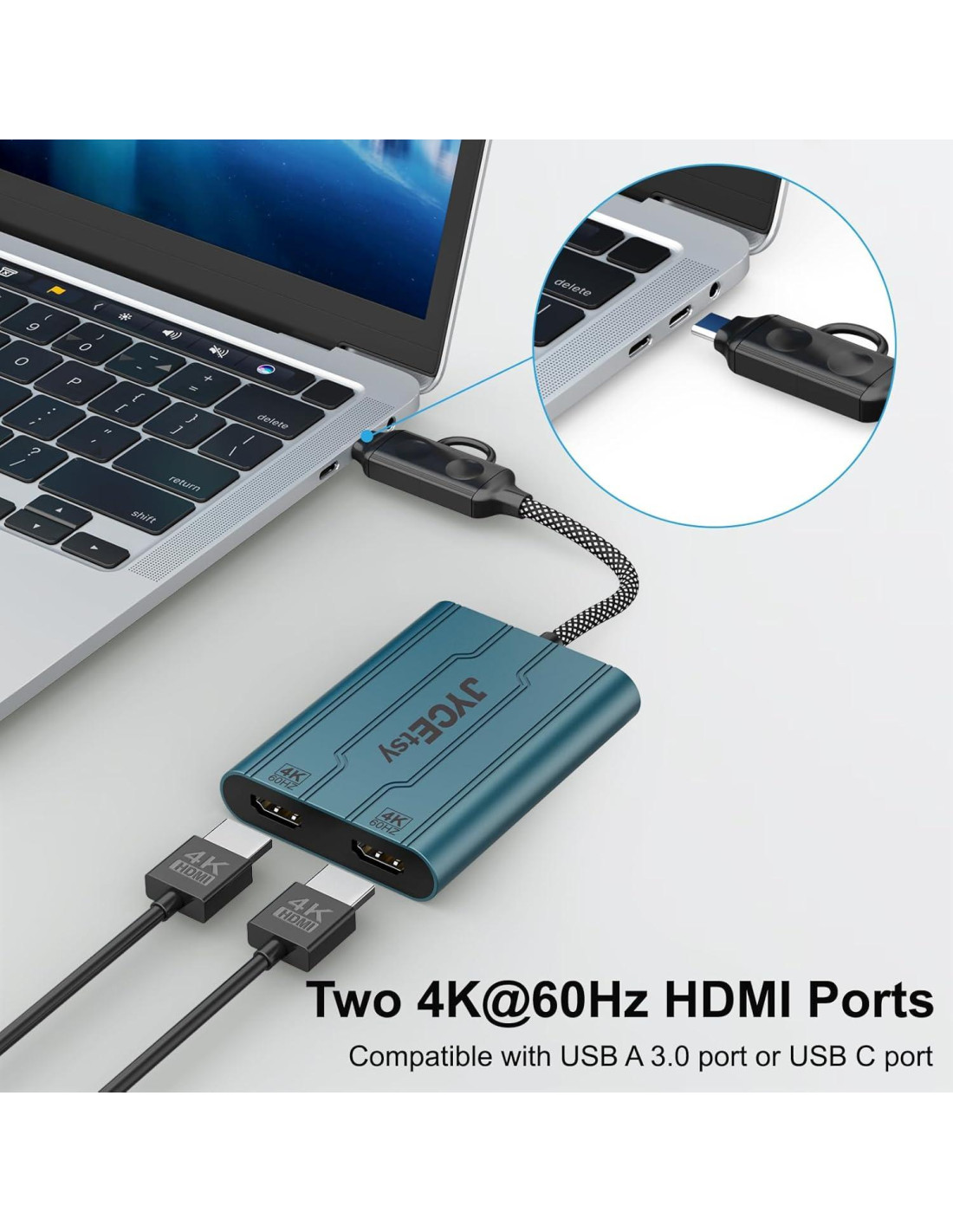- Disfrute visual ultra HD DUAL 4K@60Hz: El adaptador dual HDMI JYCETSY diseñado con tecnología DisplayLink y chip DL6950, rompe las limitaciones de visualización del Macbook Pro/Air/M1/M2/M3, puede conectar dos pantallas 4K@60Hz al mismo tiempo, el divisor HDMI dual soporta resoluciones de hasta 4K@60Hz y es compatible hacia atrás, haciendo que la visualización de imágenes sea más detallada y realista y proporcionando una experiencia visual de alta definición.
