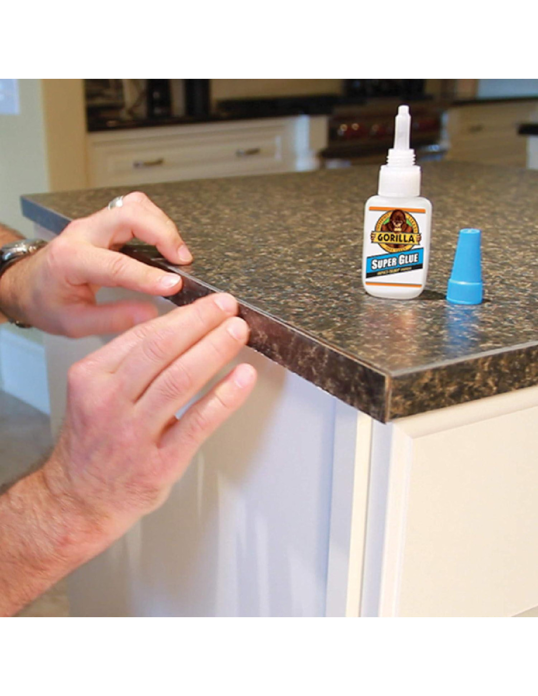 Su alta resistencia y rápido tiempo de secado hacen de Gorilla Super Glue el adhesivo ideal para una variedad de proyectos domésticos. Desarrollado para reparaciones duraderas en un instante, el pegamento claro se seca en 10-45 segundos. Nuestro Super Glue está reforzado con goma para aumentar la resistencia al impacto y manejar golpes y caídas. Lo llamamos Impact-Tough porque la unión confiable soporta el desgaste como ningún otro pegamento instantáneo. El super pegamento, también conocido como pegamento de cianoacrilato, o pegamento CA, funciona en una variedad de materiales, incluyendo plástico, metal, tela, piedra, cerámica, papel, goma y más. Además de la fórmula de cianoacrilato de alto rendimiento de Gorilla Super Glue, hemos añadido una tapa anti-obstrucción con un pin de metal en su interior que asegura un sello hermético para una máxima reutilización. Es Gorilla resistente, cada vez. Para un alto rendimiento y usabilidad, el adhesivo necesita ser protegido del aire. Una forma de mantener el aire fuera del adhesivo es empaquetándolo en botellas de plástico grueso. Debido a esta botella de plástico grueso, puede parecer que la botella está solo medio llena cuando es nueva. La botella no está completamente llena a propósito para facilitar la extracción del pegamento. Gorilla Super Glue no debe ser utilizado para contacto intencional con la piel. Haga clic en el enlace de Gorilla en la parte superior de esta página para ver otros productos de calidad de la compañía Gorilla Glue.