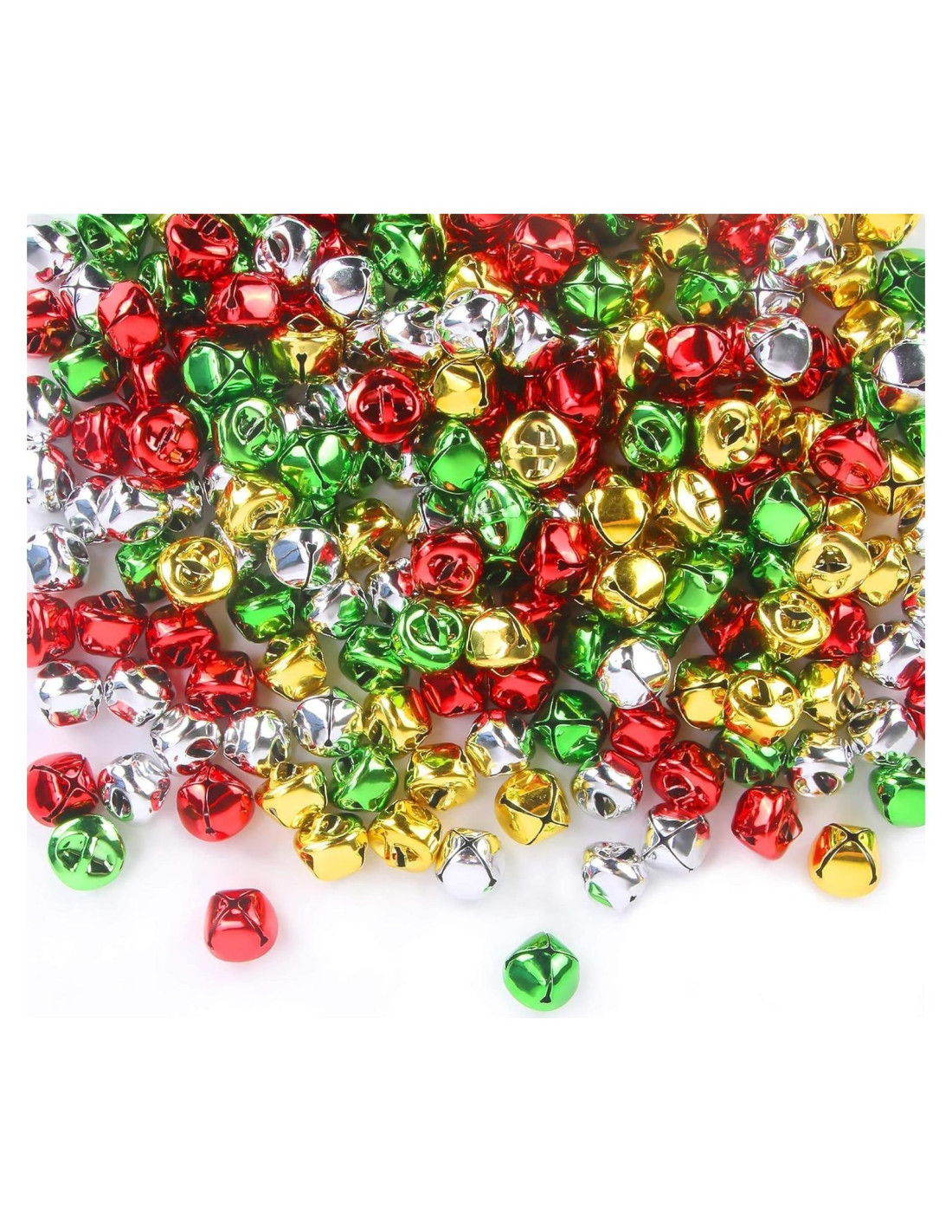 - Brillantes y Deslumbrantes: Incluye 120 piezas de campanas doradas, plateadas, rojas y verdes. Estas campanas de 2/5 pulgadas (10mm) están hechas con equipos y tecnología de electroplating avanzados y pintura teñida de buena calidad. La superficie es suave y perfecta, y se ve brillante y deslumbrante.