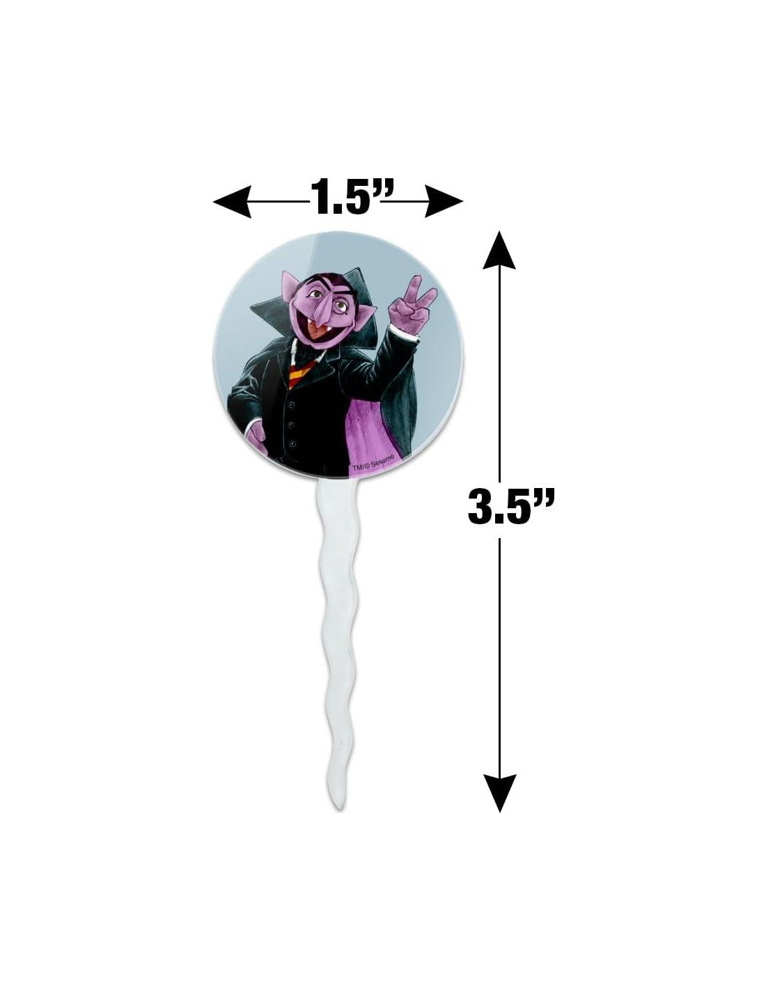 - EL TOQUE FINAL: El diseño presentado tiene 1.5" (3.8cm) de diámetro y está impreso en acrílico seguro para alimentos. Incluyendo el palillo en forma de espiral, cada topper tiene 3.5" (8.9cm) de altura total.