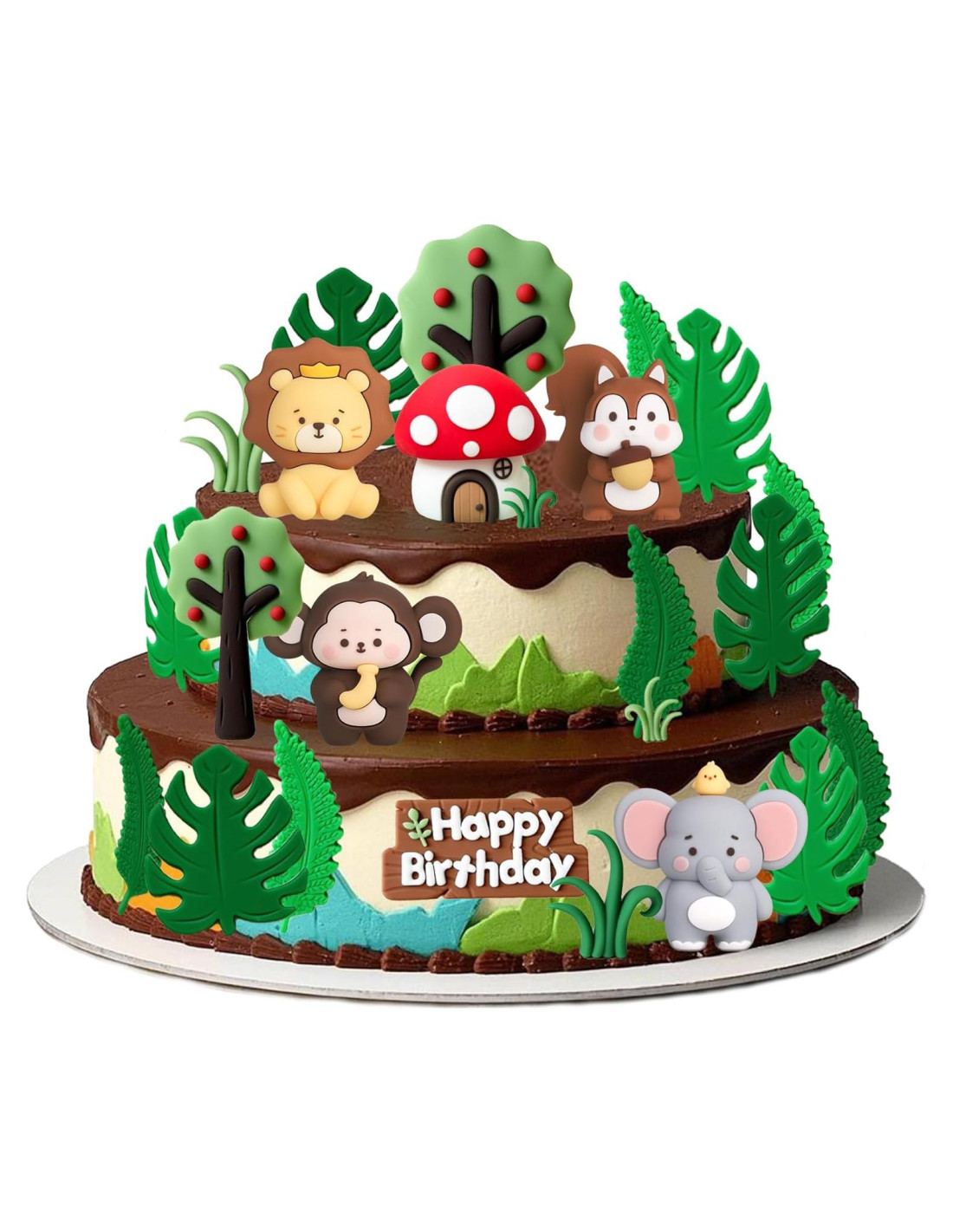 - [Mezcla y Combina Libremente] Los adornos de pastel de selva salvaje son perfectos para combinar con varios tipos de pasteles (como pasteles de crema de mantequilla, pasteles de fondant, pasteles de mousse) permitiendo una combinación libre según la creatividad personal para crear estilos únicos de decoración de pasteles