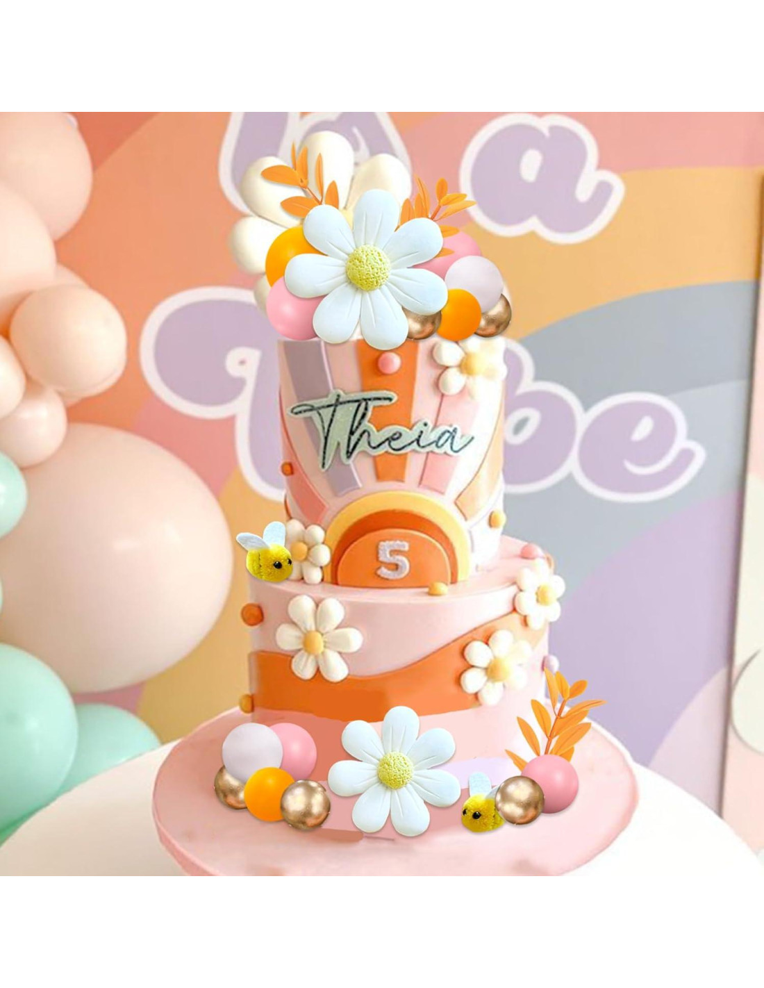 - [Amplia aplicación] Estos toppers de pastel de bolas de flores margarita groovy y decoraciones de pastel de abeja son perfectos para decorar tu pastel o cupcake. También son adecuados para cumpleaños de mujeres, niñas y niños, bodas, aniversarios, Navidad, fiestas temáticas de flores margarita y abeja, vacaciones y otras celebraciones importantes, lo disfrutarás.