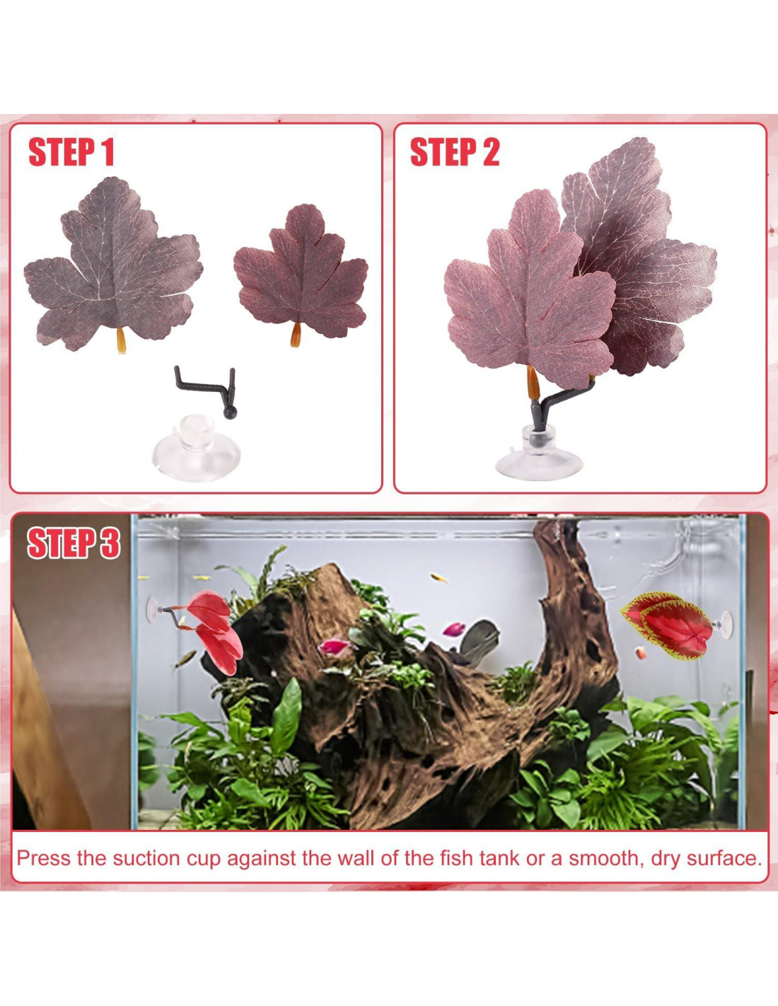 - Diseño de Hábitat Ajustable: Las ventosas rotativas de 360 permiten una posición flexible de las hojas cerca de la superficie del agua. Imita el entorno natural del betta para reducir el estrés, construir nidos de burbujas y facilitar la respiración en la superficie.