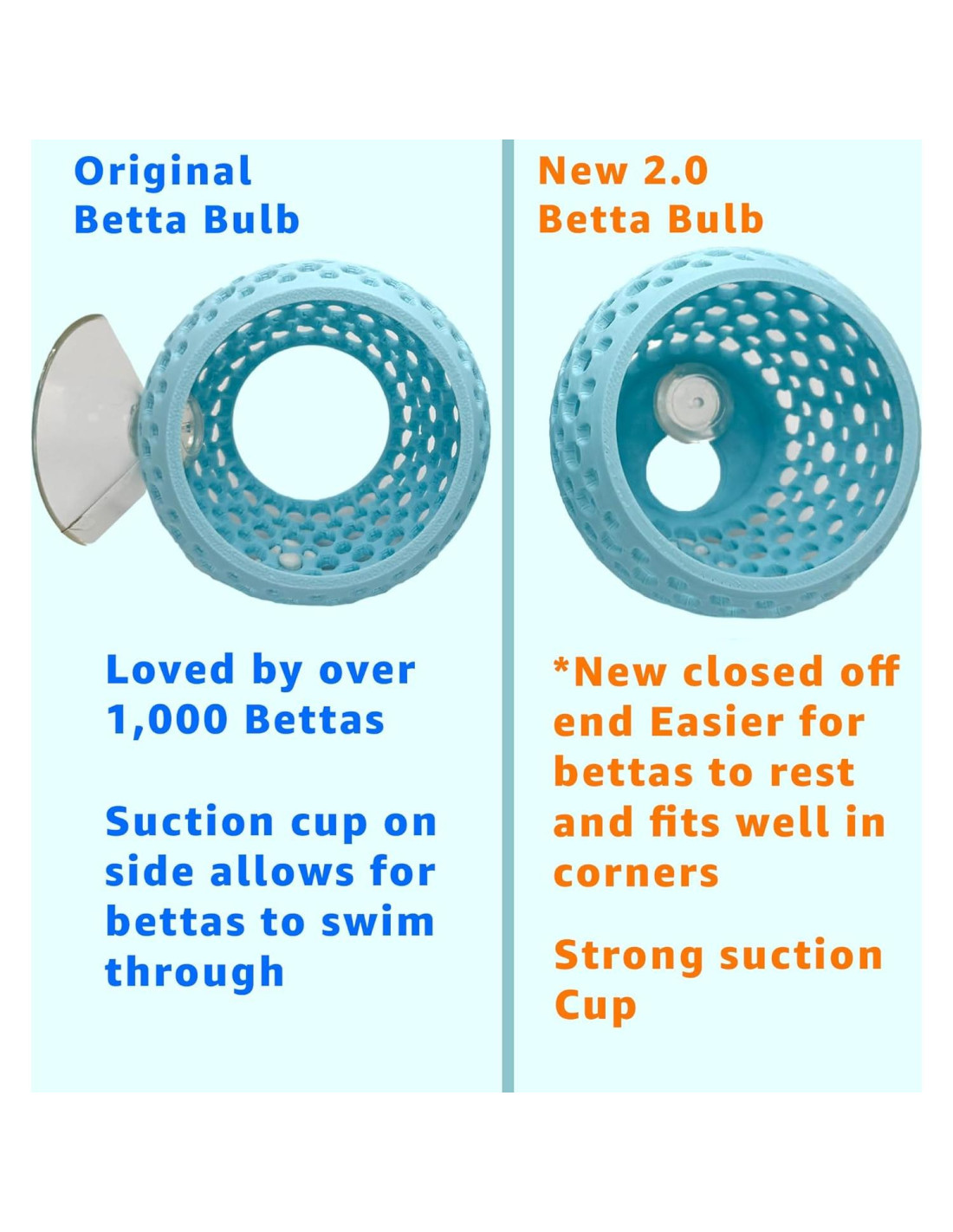 Este bulbo betta añade un lugar para que tu betta tome siestas. Es común encontrar peces betta acostados sobre hojas u otros adornos. Nuestros lindos bulbos son un lugar perfecto para ellos. El Bulbo Betta 2.0 ayuda a romper el alto flujo de agua y puede ayudar a mantener a tu betta seguro cuando está estresado. Ofrecemos nuestros escondites de bulbo betta en muchos colores diferentes. Esto te permite combinarlo con tu betta, sustrato, decoración y más. ¡Hacemos productos a juego para camarones, caracoles y otros peces de compañía! Este bulbo betta se monta en la pared, lo que permite una parte trasera segura. Esto mantiene a tu betta más protegido y puede integrarse en tu acuario con plantas vivas!