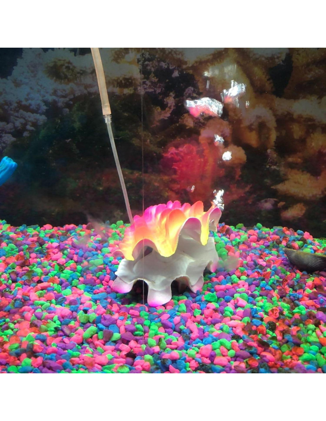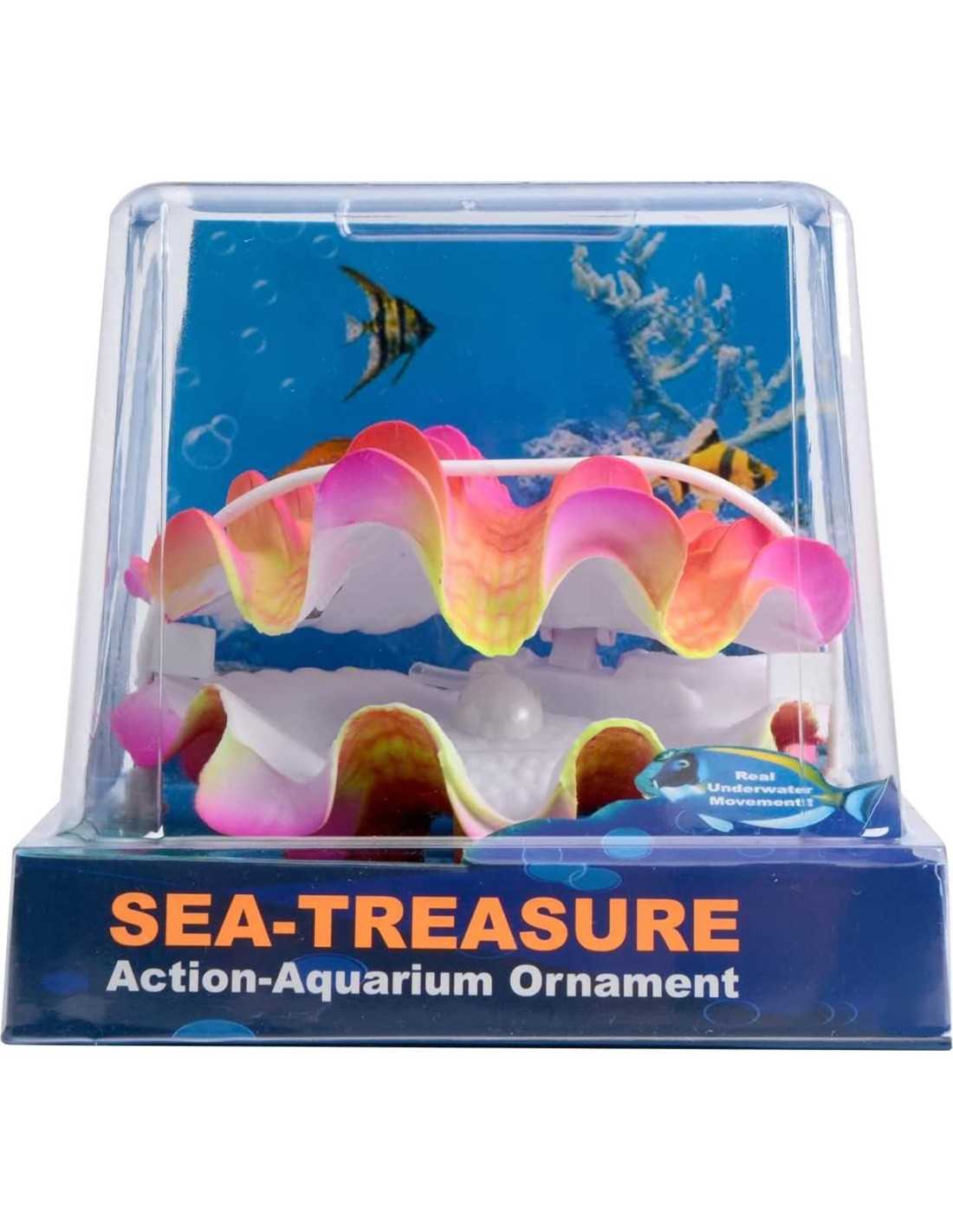 Los adornos de acuario traen animación y encanto a tu mundo submarino mientras airean tu tanque. Esta Almeja Tropical le dará a tu acuario un misterio de aguas profundas. Simplemente conecta el adorno a una manguera estándar de 3/16" (4.76 mm) de tu bomba de aire (no incluida) y observa cómo el aire abre suavemente la almeja revelando la preciada perla en su interior. Las burbujas que escapan dan vida al adorno mientras proporcionan a tu tanque el aire tan necesario. Cada adorno está creado con gran detalle y pesado para ayudar a que se mantenga en su lugar. Usa tu válvula de control de presión (no incluida) para ajustar el movimiento y el volumen de aire. Cada adorno está hecho de una resina plástica duradera que es segura para tu acuario. Divertido de ver y entretenido para ti y tus peces. La Almeja Tropical mide aproximadamente 4.5"x 3"x 3.5" (11.43 cm x 7.62 cm x 8.89 cm) de alto cuando está abierta.