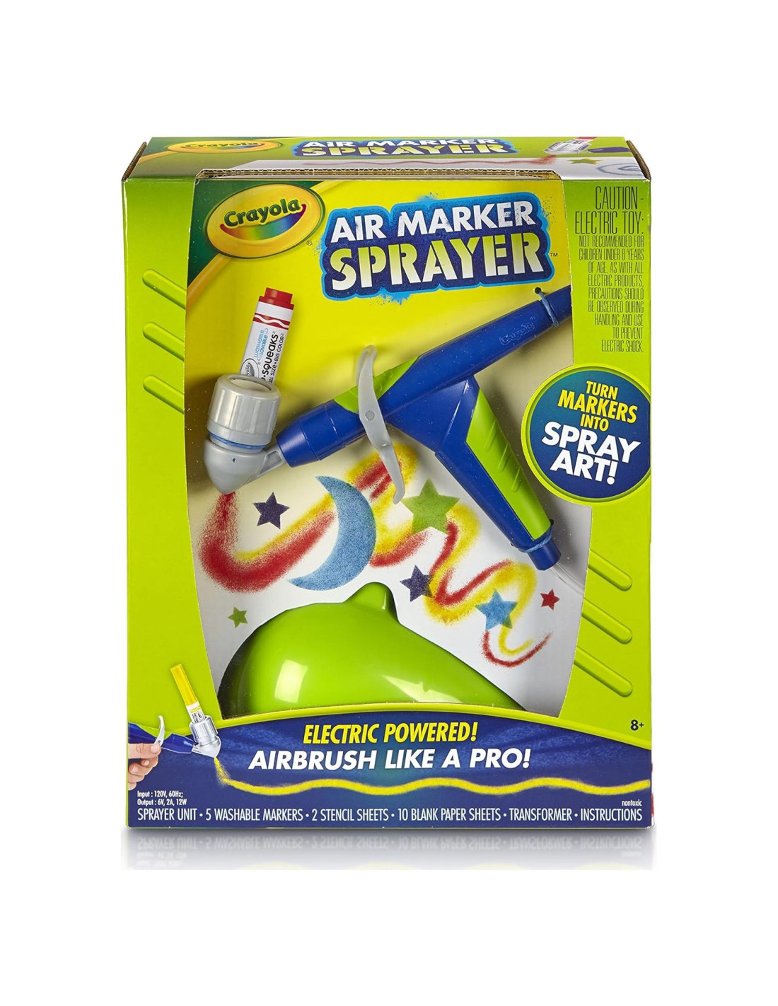 Introduce a tu hijo en el mundo del arte en spray y el aerógrafo con el Crayola Air Marker Sprayer. Este rociador fácil de usar convierte los marcadores Crayola Broad Line ordinarios en un spray vívido y suave de tinta. Los niños pueden usar el rociador para crear sus propios patrones o combinarlo con las plantillas incluidas para diseños temáticos precisos. Y gracias a su diseño motorizado y eléctrico, el rociador proporciona horas de diversión ininterrumpida, sin necesidad de baterías. Crea arte con aerógrafo en papel, camisetas, ventanas y más. El rociador funciona con muchos marcadores Crayola de línea ancha diferentes, incluidos los marcadores para tela y ventanas. ¡Y es motorizado! Simplemente conéctalo para una creatividad continua.