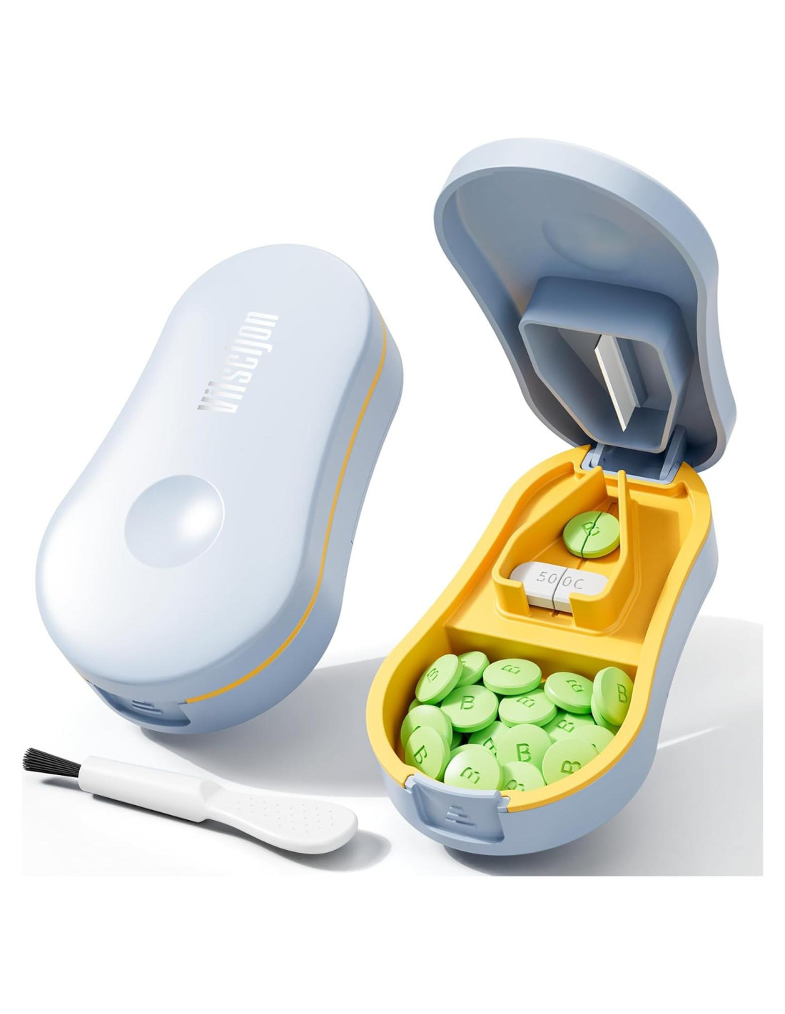 - [Fácil de desmontar y lavar] Todo el cuerpo es lavable, mientras que la almohadilla de silicona incorporada es removible, fácil de limpiar el cortador de pastillas, conveniente para mantener limpio e higiénico. Se utiliza un pequeño cepillo de limpieza para limpiar el polvo triturado y evitar la mezcla de medicamentos.