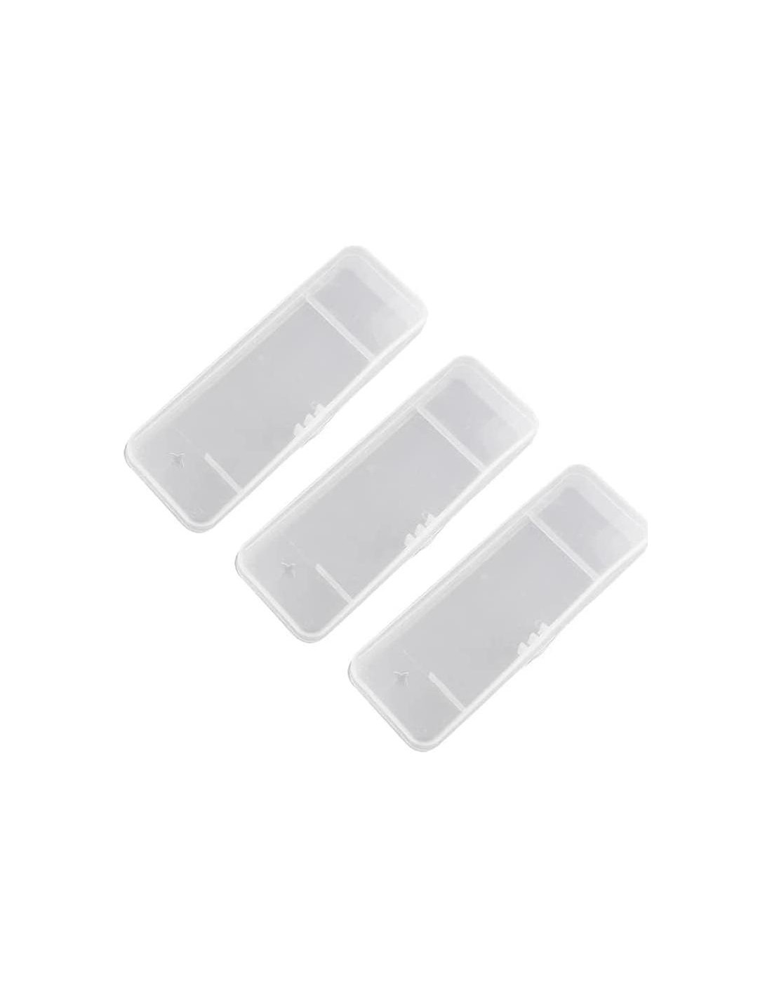 Descripción del Producto: Caja de Almacenamiento Universal para Afeitadoras Caja Plástica Totalmente Transparente Especificaciones de la Caja de Afeitar: Material: Plástico Color: Blanco Tamaño: 15*5.3*3.2cm (5.91*2.09*1.26 pulgadas) El Paquete Incluye: 3 piezas de Caja de Afeitar
