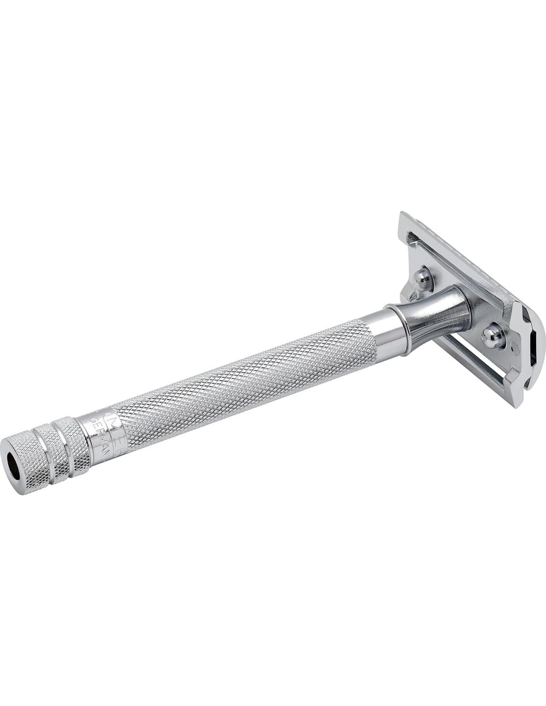 Descripción del Producto 10.16 cm en total. Cabezal de afeitado de doble filo de 3.81 cm. Construcción con revestimiento de cromo y mango estriado. Viene con una cuchilla reemplazable. Pesa aproximadamente 68.18 g. Historia de la Marca MERKUR Stahlwaren GmbH & Co. es un fabricante líder mundial de equipos de afeitado de calidad desde 1896. MERKUR ofrece la maquinilla adecuada para cada tipo de barba y rostro, asegurando así las mejores condiciones para un afeitado húmedo efectivo.