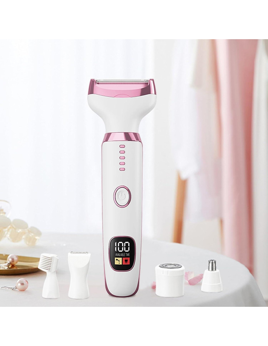 - Afeitadora eléctrica 5 en 1: Di adiós al vello no deseado en cualquier parte de tu cuerpo con nuestra afeitadora eléctrica para mujeres 5 en 1 con un total de cinco cabezales removibles para todas tus necesidades de afeitado. Desde vello facial, vello en los labios, vello de cejas y vello de nariz hasta vello en axilas, brazos, área de bikini y piernas, ya sea muy fino o muy duro, obtendrás un afeitado limpio y suave en solo unos minutos sin dejar residuos.