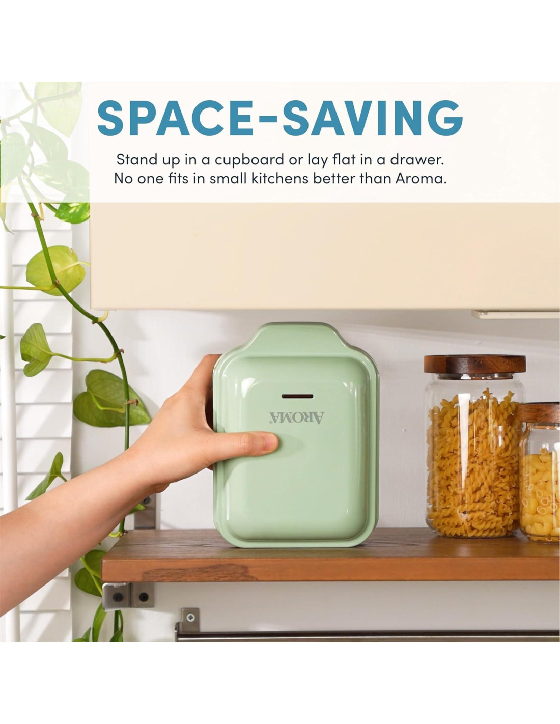La máquina de waffles 3-en-1 de Aroma es más que una máquina de waffles clásica, también es una prensa panini rápida y fácil y una parrilla antiadherente para sándwiches de desayuno. Las placas de cerámica desmontables hacen de esta máquina de waffles un imprescindible para el brunch. La mejor máquina de waffles de Aroma se precalienta rápidamente con una luz indicadora clara en la parte superior que te dice cuándo la plancha para waffles está caliente y lista para la masa. El calor envolvente es el secreto para un acabado dorado y crujiente. ¿Quieres un waffle más oscuro o tocino extra crujiente? Simplemente espera un poco más; esta máquina de waffles es lo suficientemente potente como para cocinar a tu preferencia. La plancha para waffles tiene 6 placas desmontables, por lo que puedes convertir instantáneamente tu clásica plancha para waffles en una prensa panini para sándwiches calientes o una parrilla para sándwiches de desayuno. Deja que la plancha para waffles se enfríe completamente, luego desbloquea las placas desmontables, levántalas y cámbialas por algo nuevo. Todas las 6 placas intercambiables tienen un recubrimiento de cerámica libre de PFAS para ayudar a prevenir que los alimentos se peguen o los desechos cocidos. Con solo un ligero rocío de aceite, los waffles, paninis y verduras a la parrilla se despegan fácilmente. Crea un desayuno de calidad de café y explora divertidas recetas de brunch en casa, utilizando la máquina de waffles 3-en-1 de Aroma con Placas Desmontables.