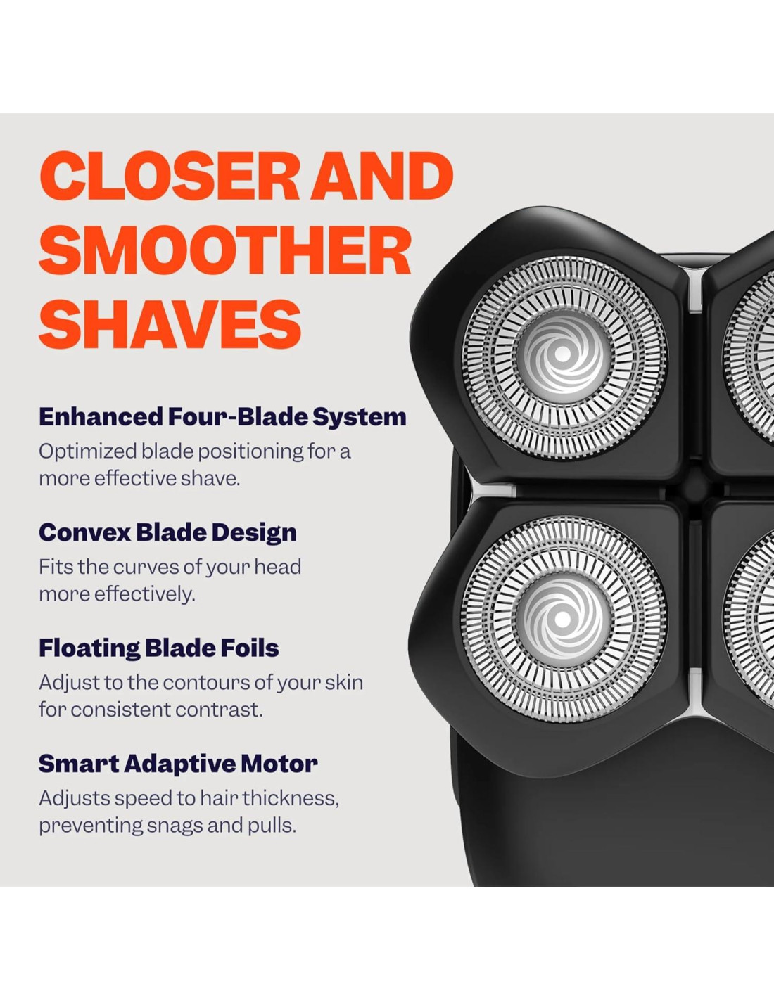 - Tan Cercano como una Cuchilla, Sin Complicaciones. Obtén la cercanía de una afeitadora tradicional sin las complicaciones. La FlexSeries asegura que tu cabeza esté tan suave como si hubieras usado una cuchilla, pero sin cortes, rasguños ni irritaciones. Reemplaza la cuchilla rotativa ScalpSafe cada 50-60 afeitados, o aproximadamente cada 6-8 semanas dependiendo de la regularidad del afeitado, para mantener un rendimiento suave como la mantequilla manteniéndolas afiladas y libres de óxido.