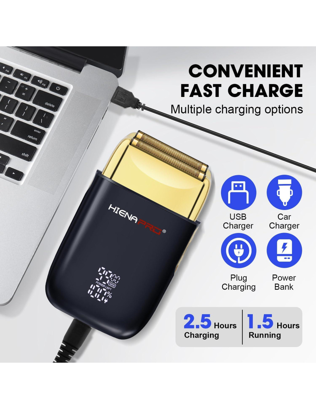 - [Opciones de Carga Múltiple USB] Disfruta de la conveniencia de varias opciones de carga, asegurando que nunca te quedes sin energía. Puedes cargar nuestra afeitadora eléctrica de lámina por PC, Cargador de Coche, o incluso un Banco de Energía con nuestro cable de carga USB en cualquier lugar que desees.