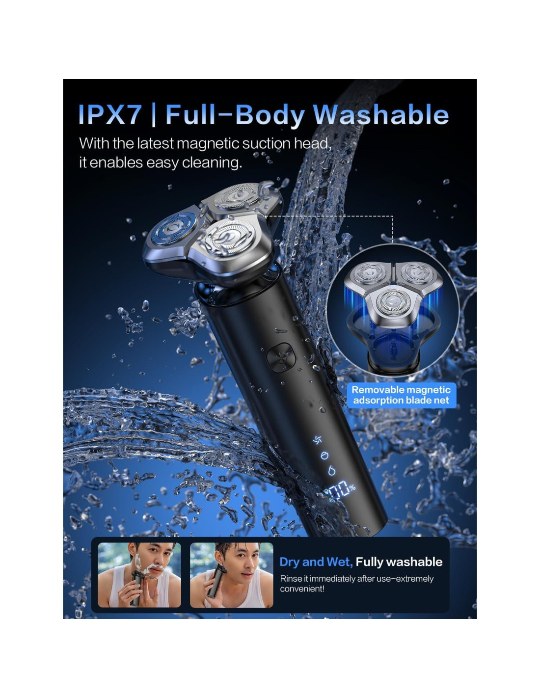 - [Pantalla digital en tiempo real] Equipado con una pantalla digital de batería en tiempo real, esta afeitadora proporciona actualizaciones claras del estado de la batería, por lo que nunca te quedarás sin carga. El recordatorio de limpieza incorporado asegura un mantenimiento fácil, mientras que la protección contra sobretensiones y el bloqueo de viaje brindan seguridad y comodidad adicionales, lo que la hace perfecta para el uso diario y los viajes