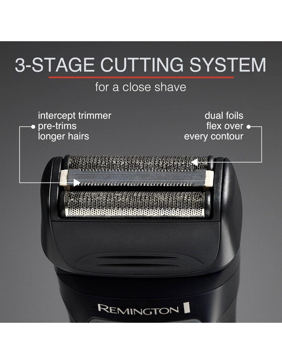 - RECORTADORA FLEXIBLE: La recortadora de interceptación recorta previamente los pelos más largos mientras que las láminas flexibles dobles se adaptan a los contornos para un afeitado rápido y cercano, incluso en áreas de difícil acceso.