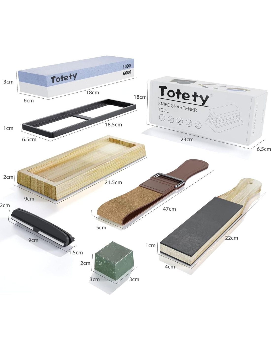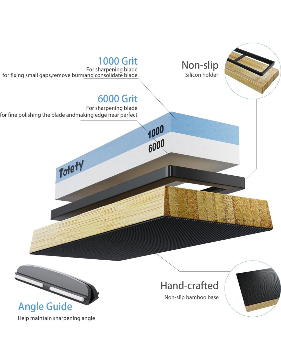 - Piedra de afilar multifuncional: La piedra de afilar Totety es versátil con grano de dos lados 1000/6000, perfecta tanto para afilar como para un acabado superfino.