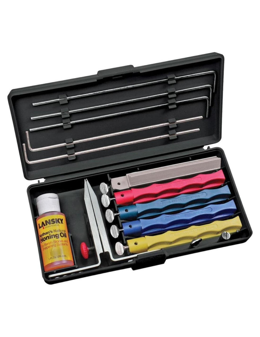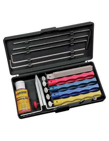 El sistema Lansky es ideal para cuchillos de exterior, cocina y taller. Con más de 40 años en producción, es un favorito entre los entusiastas del bricolaje y la cuchillería en todo el mundo, ofreciendo la más amplia gama de accesorios. Mantener un ángulo consistente es crucial para el afilado, y el Sistema de Ángulo Controlado Lansky asegura un afilado de bisel preciso cada vez. Ya seas un principiante o un experto, este sistema ofrece un borde afilado como una navaja profesional, convirtiéndolo en la herramienta definitiva para afilar cuchillos.