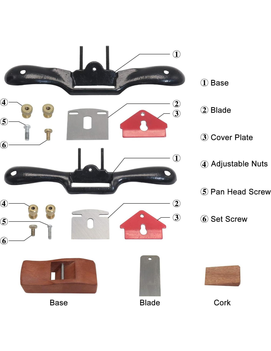 - Aplicación: Estas herramientas de mano para carpintería se utilizan en artesanía en madera, talladores de madera y trabajos en madera para cepillar superficies complejas y patrones irregulares. Perfecto para uso de principiantes. Cortadores ajustables ideales para dar forma a las patas y asientos de sillas, plantillas curvas y muchos otros tipos de trabajos curvados.