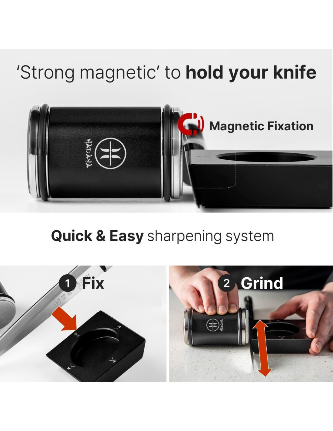 - REGALO PREMIUM PERFECTO PARA ENTUSIASTAS DE LA COCINA: Combinando funcionalidad de grado profesional, construcción duradera y diseño elegante, el Afilador de Cuchillos HADANA Edición Negra es un regalo ideal para chefs, profesionales culinarios, cocineros caseros, amantes de los gadgets de cocina y cualquier persona que valore el afilado preciso de cuchillos y herramientas de cocina de alta calidad.